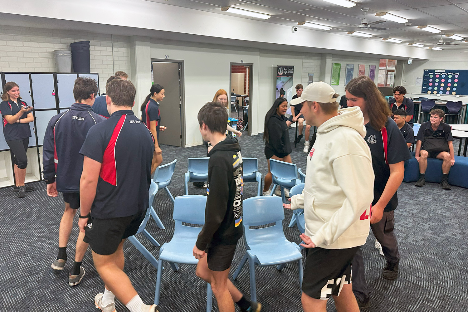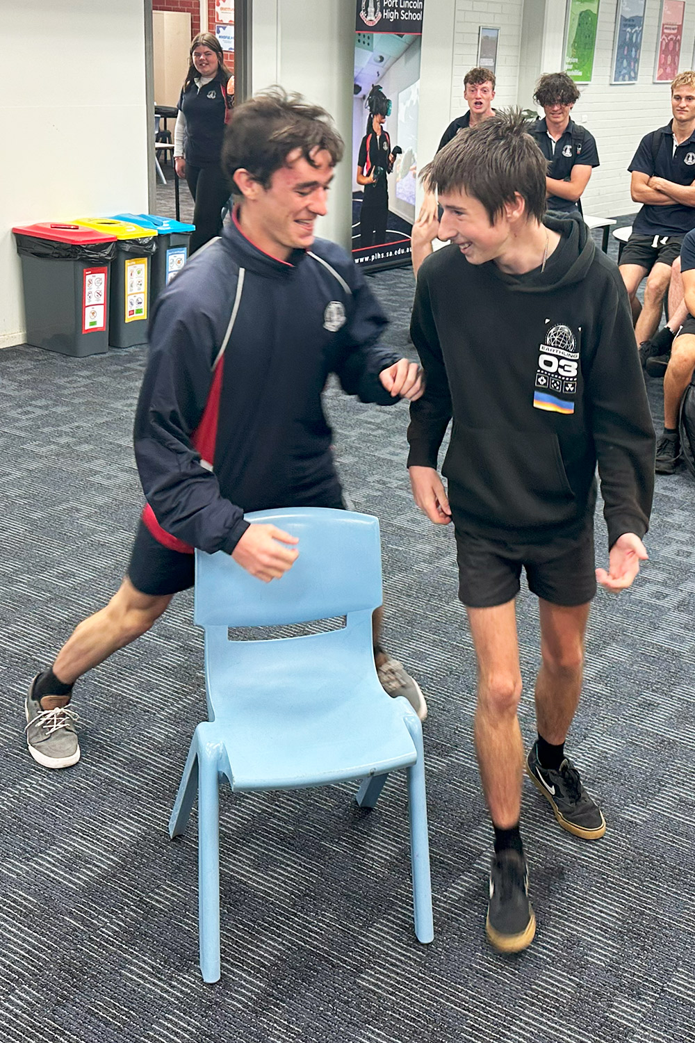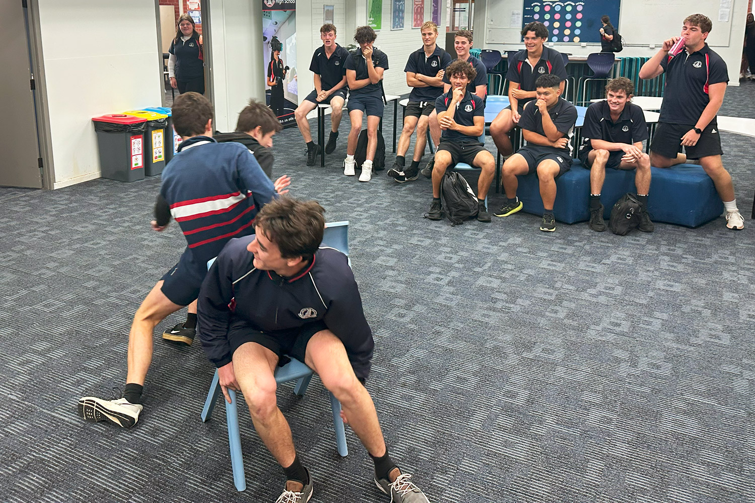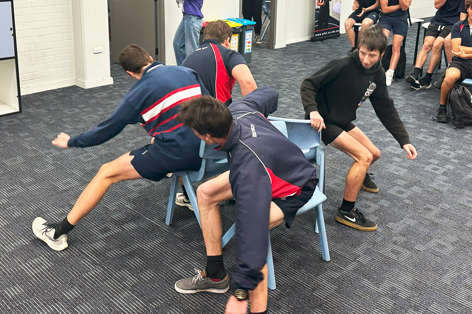 Today’s Year 12 Friday Crew Challenge was Musical Chairs. The 12.1 Richardson/Evans Dharna Crew took it out again, thanks to the 100m champion, Evan Lukin.