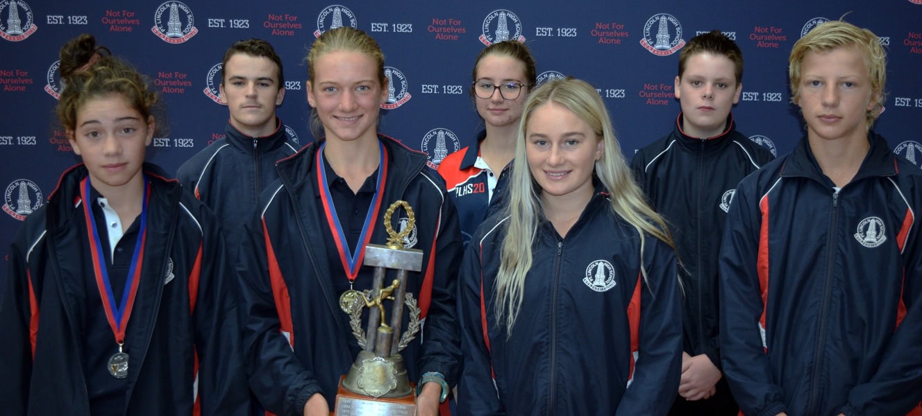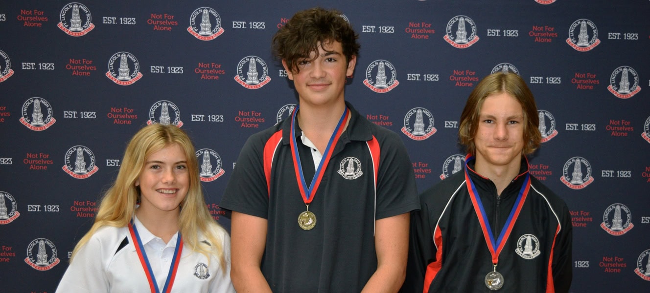 Under 16 Age Group Champions (L-R): Under 16 Girls Winner: Billie Jenkins (Grantham house / 56 points), Under 16 Boys Winner: Tait Appleton (Finders house / 34 points) & Under 16 Boys Runner-up: Taj Freeman (Grantham house / 31 points) Absent: Under 16 Girls Runner-up: Shenice Wells (Eyre house / 51 points)