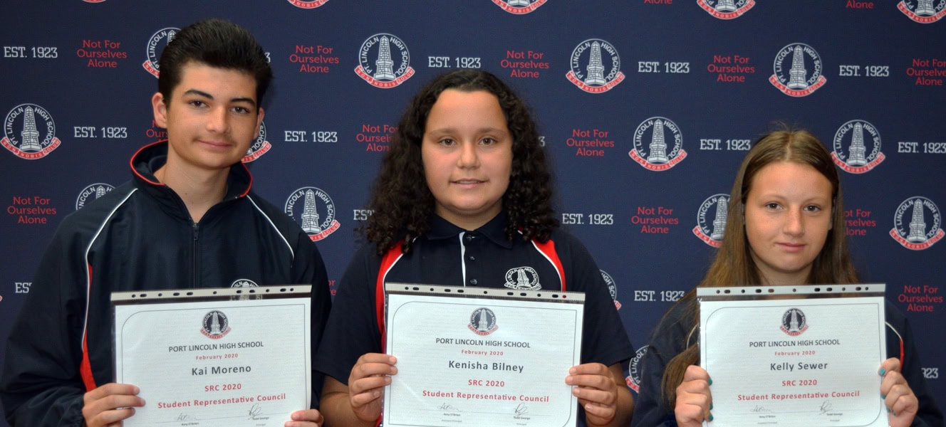 2020 Room 23 Student Representative Council Members (L-R): Kai Moreno, Kenisha Bilney & Kelly Sewer