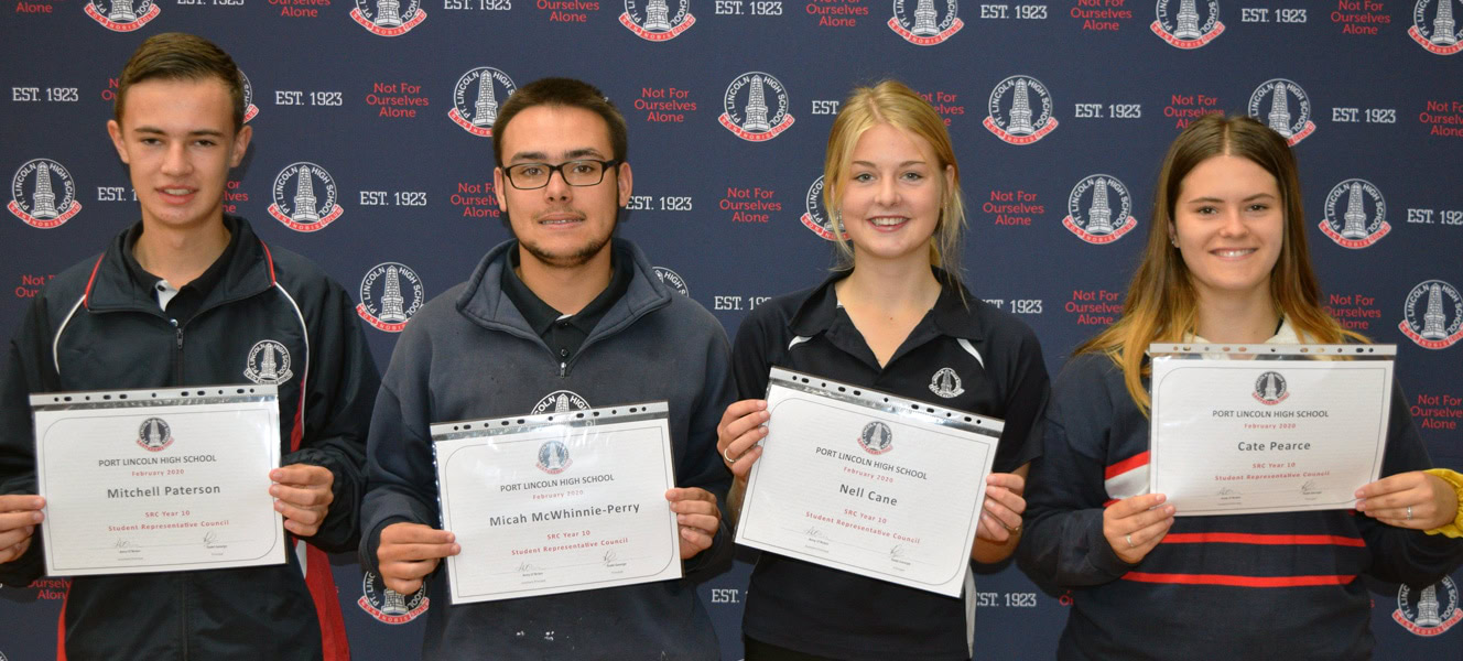 2020 Year 10 Student Representative Council Members (L-R): Mitchell Paterson, Micah McWhinnie-Perry, Nell Cane & Cate Pearce