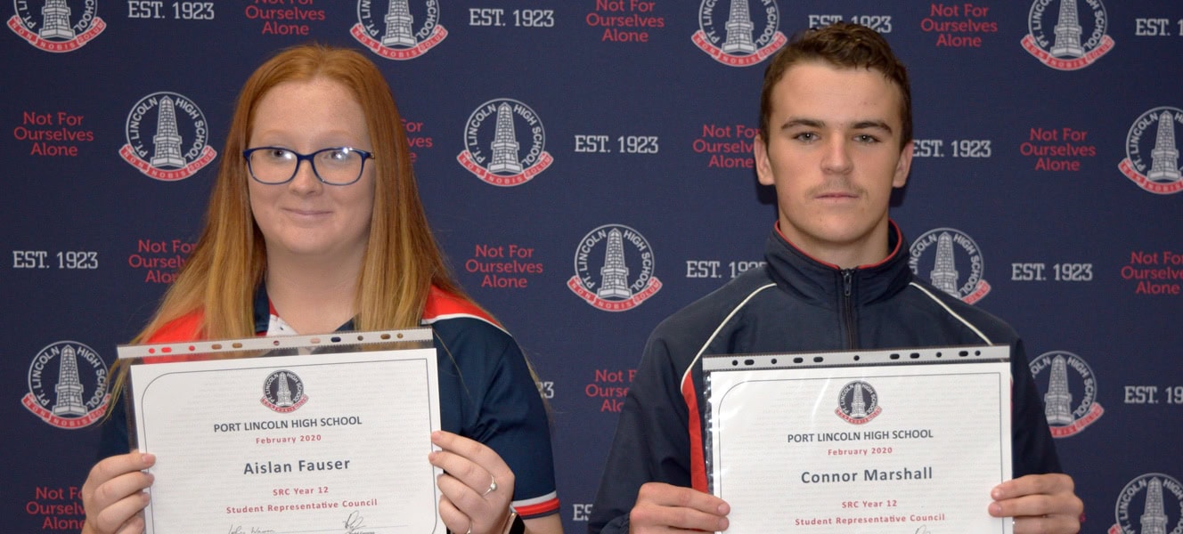 2020 Year 12 Student Representative Council Members (L-R): Aislan Fauser & Connor Marshall