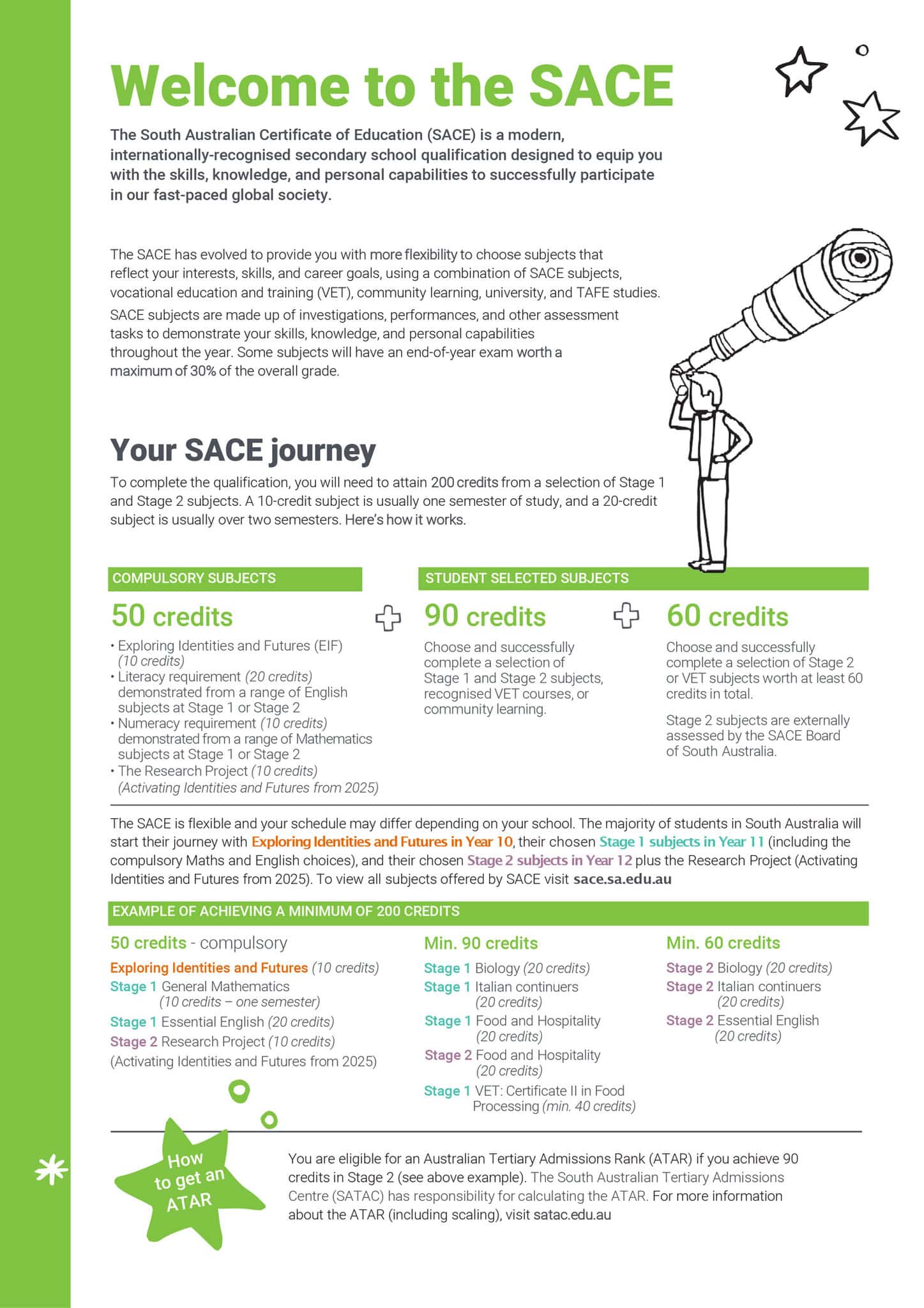 Additional information about studying the SACE can be accessed via the SACE website: https://www.sace.sa.edu.au/studying.