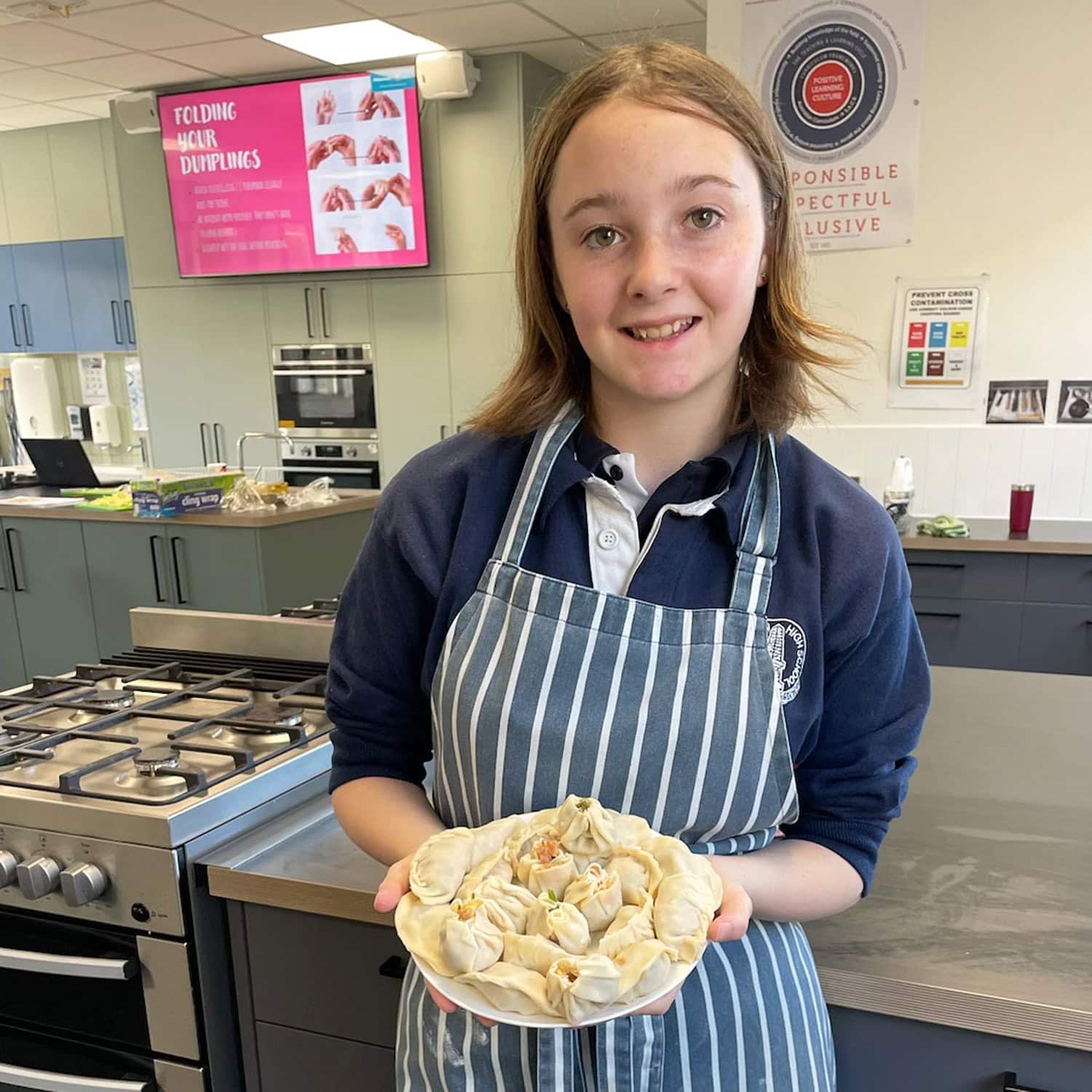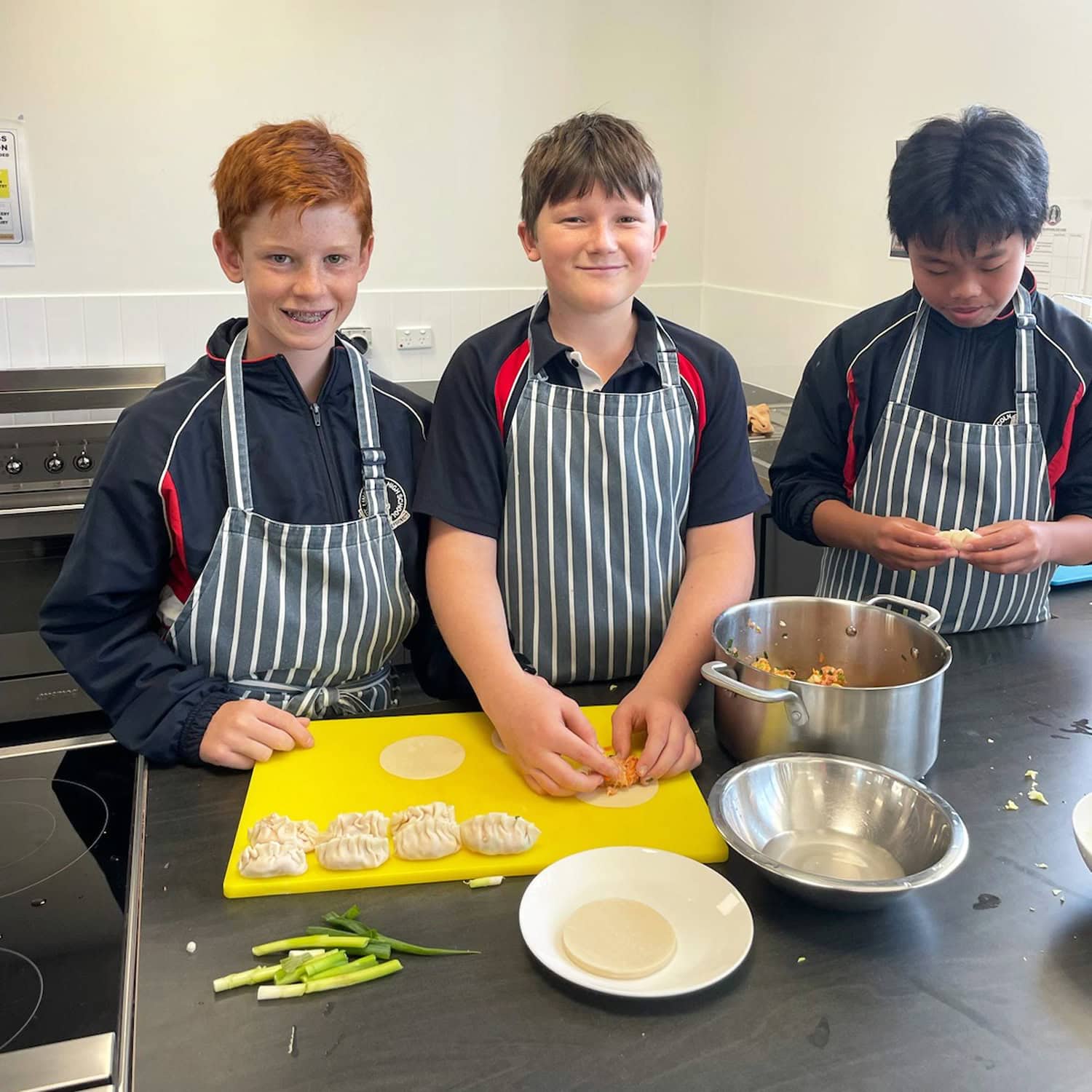 In South Australia, Year 8 students are encouraged to participate in a unit of Food Technology as a component of their curriculum – at PLHS, this learning falls under the banner of the Health & Physical Education faculty. This term, students from 8H and 8A have been learning how to prepare some favourite home-cooked meals – the dishes included spaghetti bolognaise (“not quite as good as Mum’s”) and butter chicken, as well as treats like chocolate chip cookies and pork potsticker dumplings.