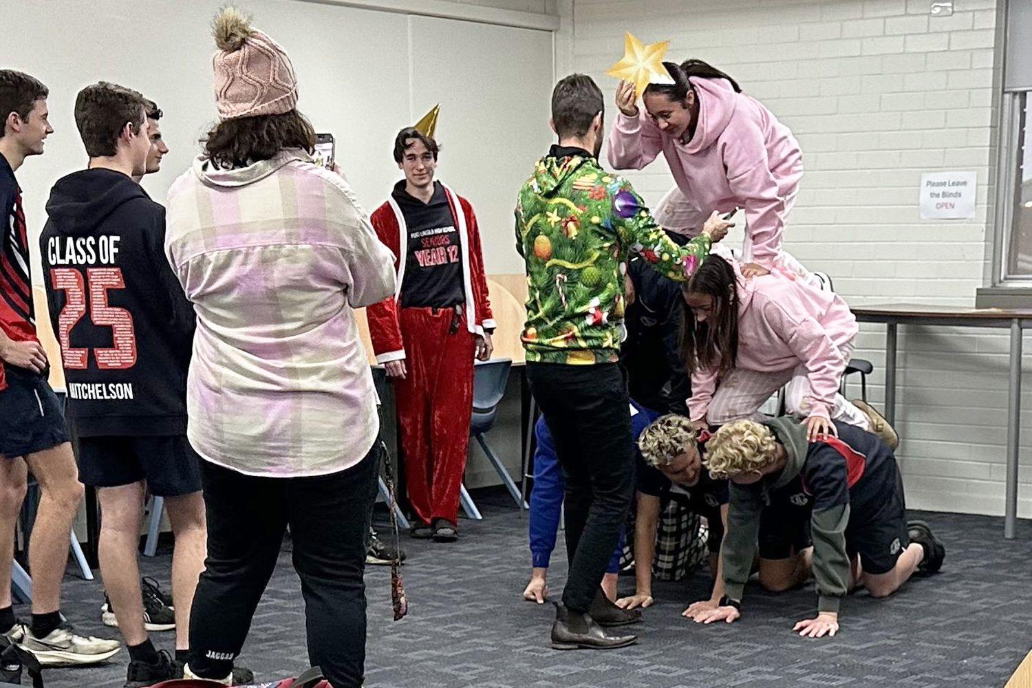 Meanwhile, our Year 11 Crews participated in a festive and competitive spirit. The Best Dressed Award went to Ruby “The Reindeer” Gamlin, pictured here fittingly decorating a reindeer cookie.
