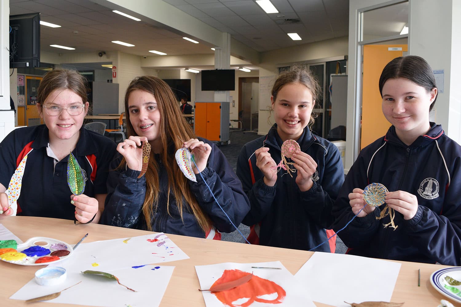 The second of our three lunchtime activities for National Reconciliation Week was held on the Eyre Floor earlier today – with the support of Aboriginal Education and Wellbeing Team staff, a group of students produced some Aboriginal art and craft.