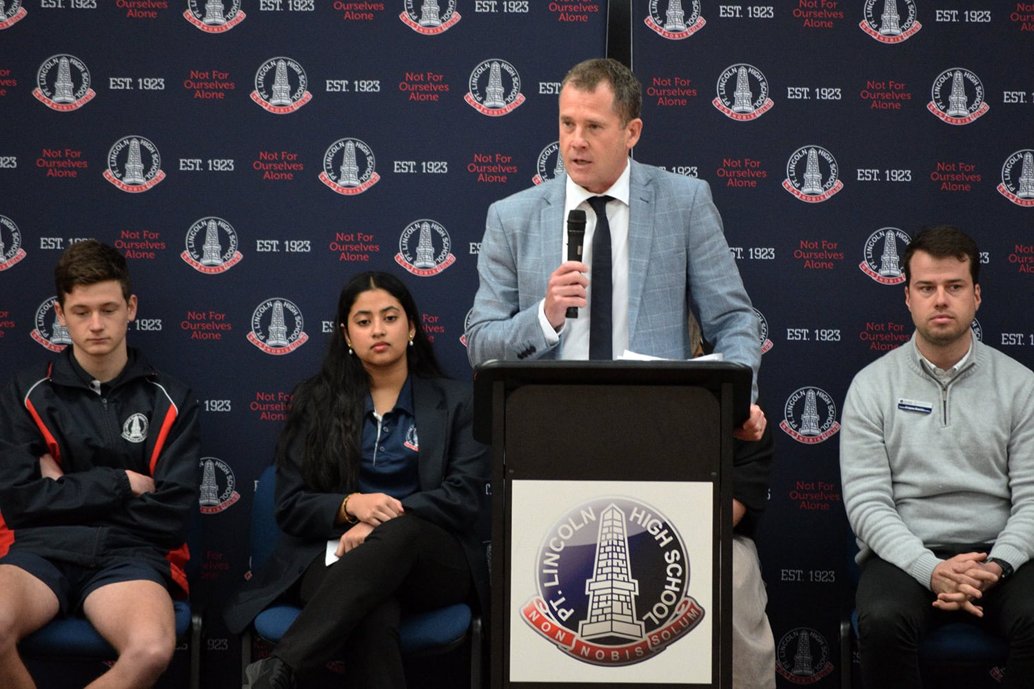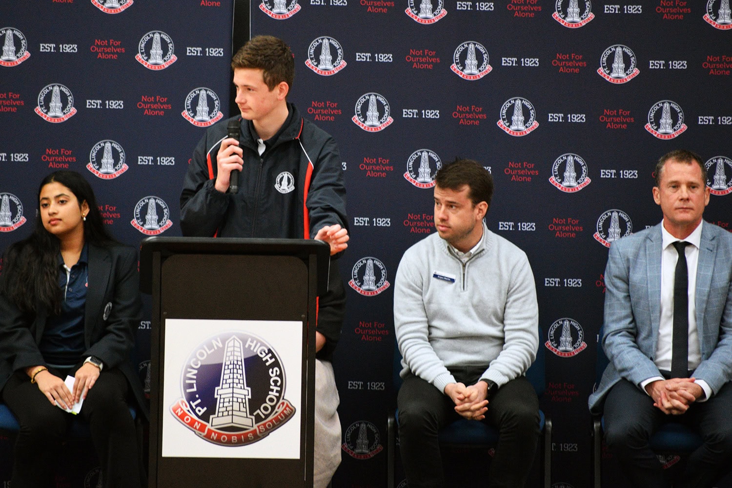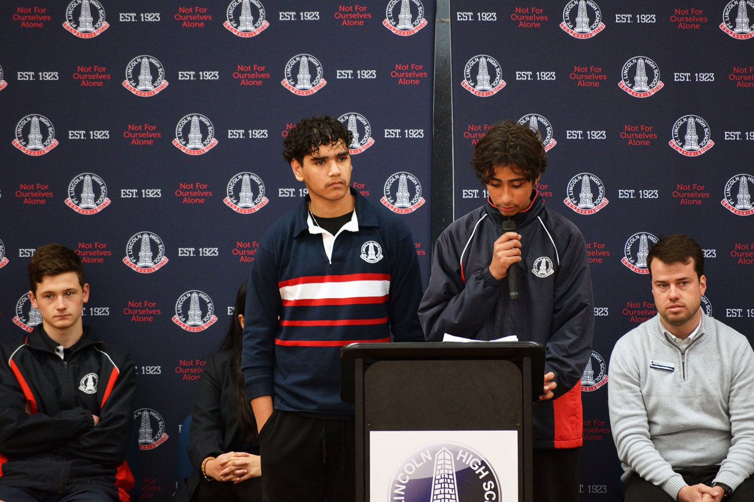 Today’s ceremony was jointly conducted by Principal Student Leader Prapti Pai and Year 11 Student Councillor Liam Akehurst. Following a Welcome to Country delivered by Year 9 students Beau Mclean and Wally Clements, PLHS Principal Mr. Craig Akehurst provided a thoughtful address about the theme of success and the need for our students to identify, study and imitate the successful role models around them. Deputy Principal Mrs. Lesley Warren then recognised the outstanding efforts of a small group of ATSI boys who participated in a recent Operation Flinders program with distinction.