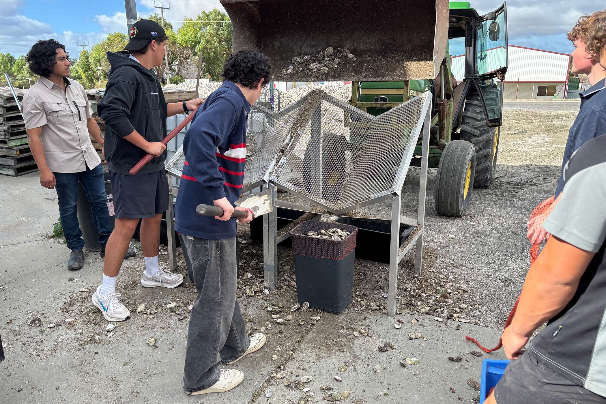 Our Year 11 Aquaculture/Maritime crew recently spent time in the field demonstrating our school value of Responsibility by contributing to a special marine environment project. We collaborated with Cuttys Boat Tours and eyrelab – two local firms with a focus on education, restoration and ecology – who are currently rebuilding reefs around the Lower Eyre Peninsula to encourage marine life to prosper. In particular, they provide habitat for our native oyster which in turn will help prevent the expansion of toxic algae.