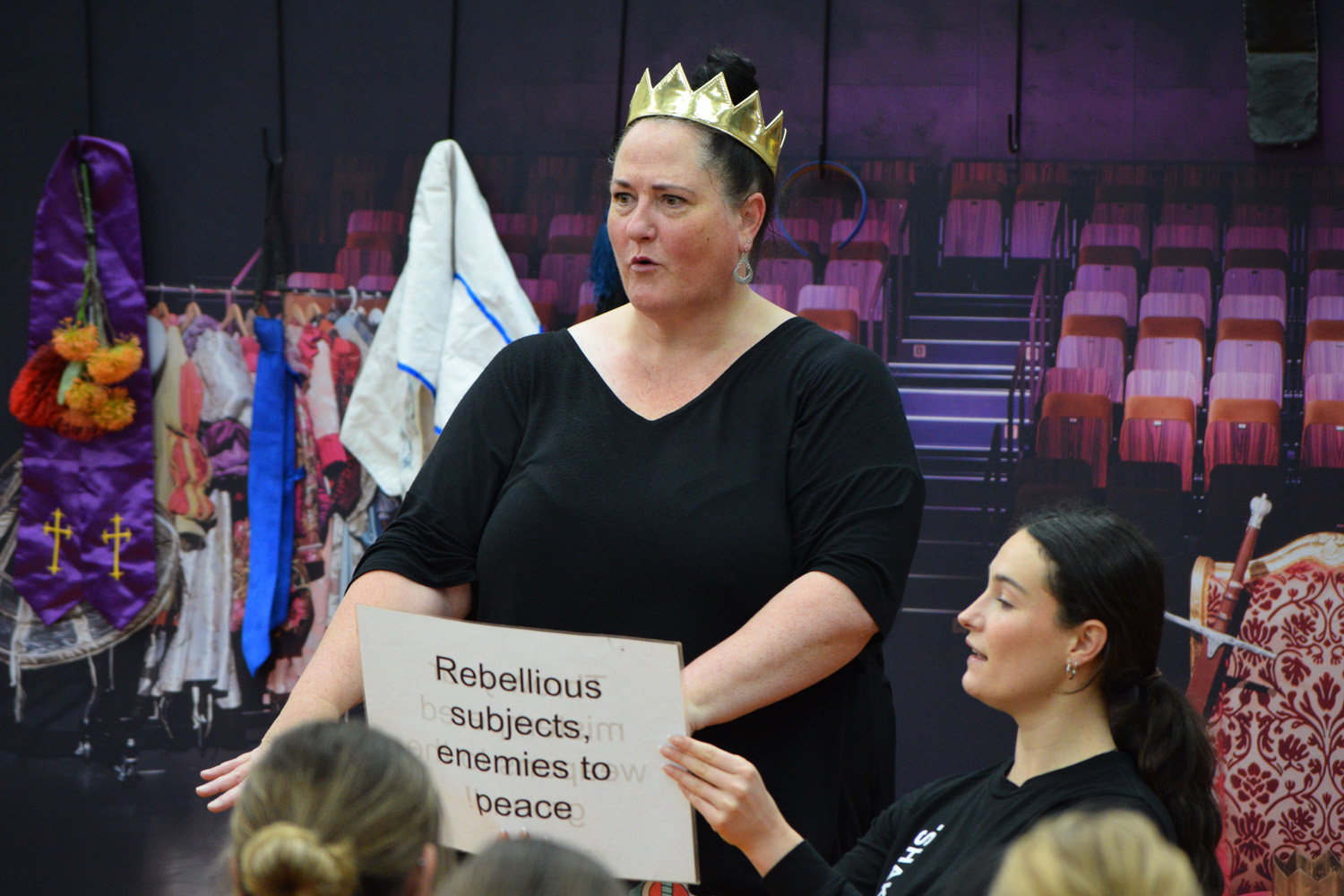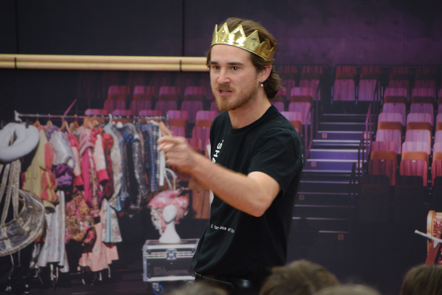 In true Crew spirit, PLHS students and staff were invited to participate in interactive sections of both shows – I delivered a few lines as R&J’s Prince Escalus, while a special mention must go to “King” James Zanello, who shone as Macbeth’s King Duncan.