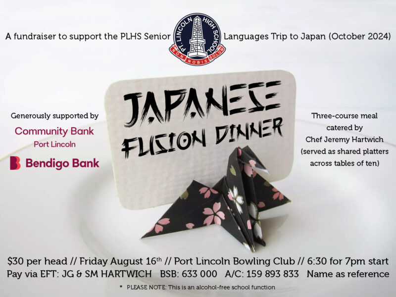 Dinner Fundraiser for PLHS Japan Trip (Fri Aug 16)