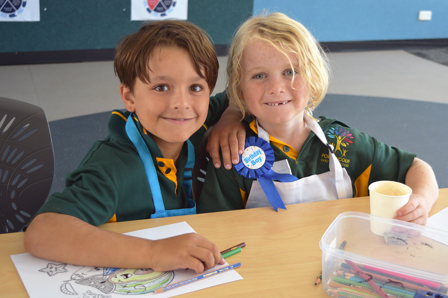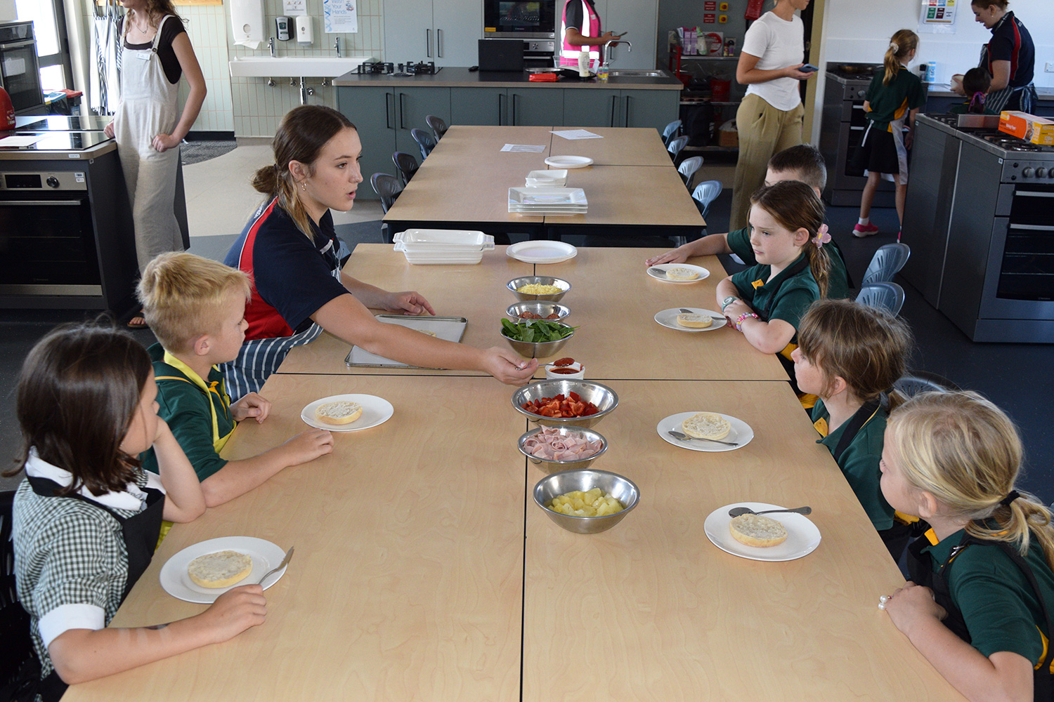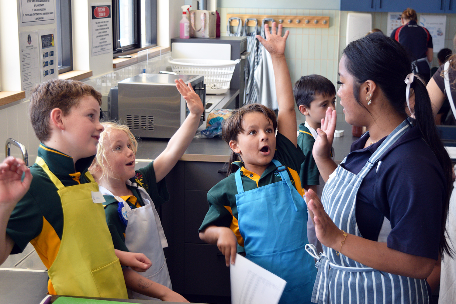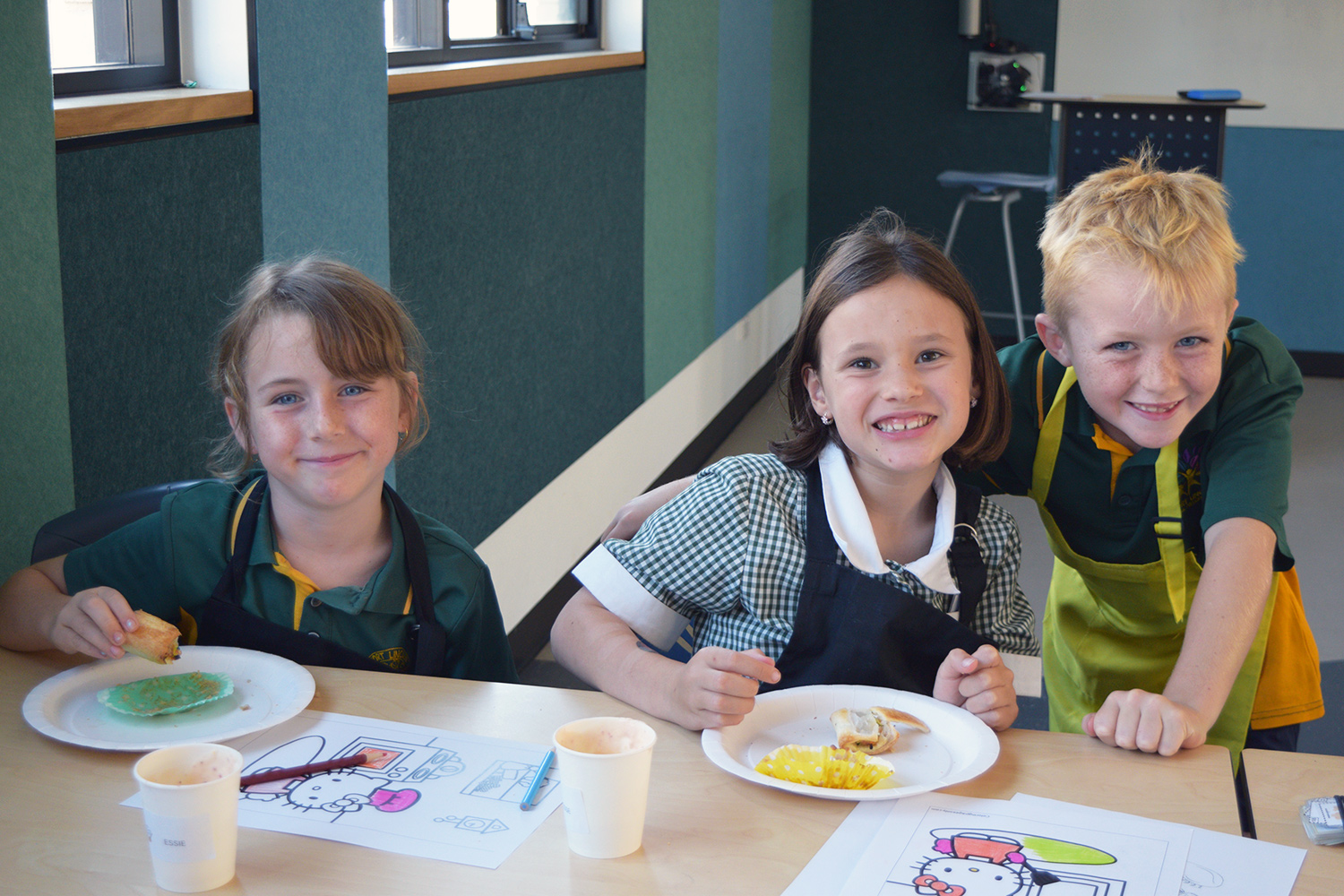 Our Stage 2 Child Studies class was recently visited by their buddies from Room 7 at the Port Lincoln Junior Primary School to share knowledge about healthy eating and kitchen safety.