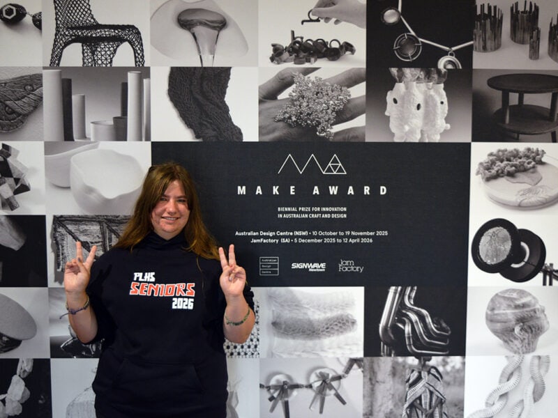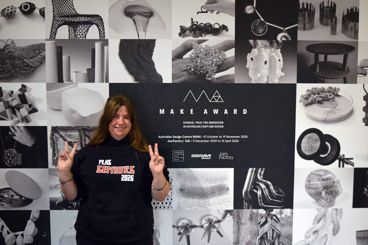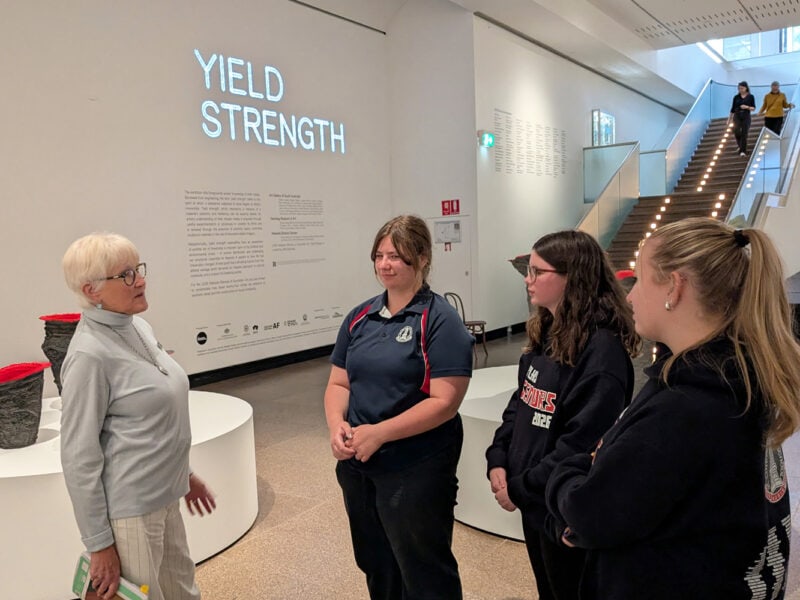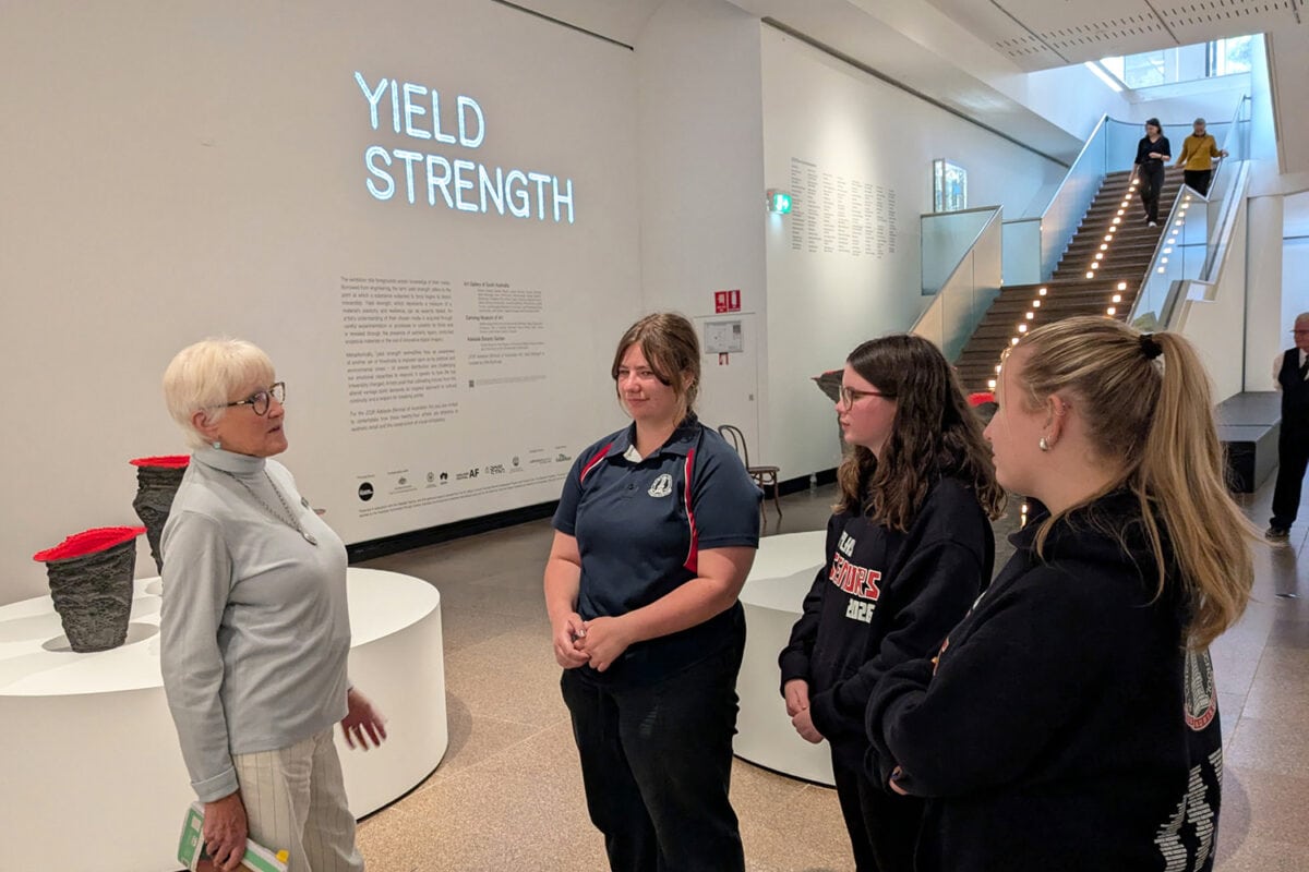 On Friday, the Art class was taken on a walking tour of public art in the city of Adelaide, including the Chihuly sculptures in the Botanic Gardens, before heading back to AGSA for a workshop and guided tour of “Yield Strength”, the 2026 Adelaide Biennial of Australian Art exhibition. Meanwhile, the Design students toured Adelaide University’s Campus – West (tertiary design, photography & architecture courses), the SAHMRI Building and SODA Objects (eclectic furniture showroom), before rejoining their peers at AGSA; there they viewed the collection highlights, including the priceless LC1 chaise.
