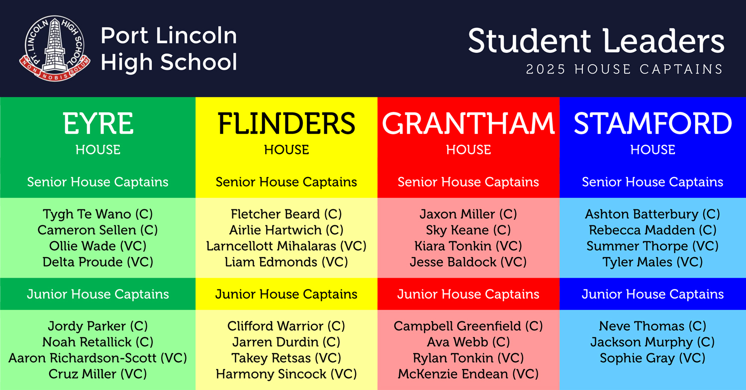 We are delighted to announce the following students as our House Captains for 2025 – these young leaders have been elected by their peers to represent our four houses in the lead-up to and on Sports Day (Thursday March 6th).