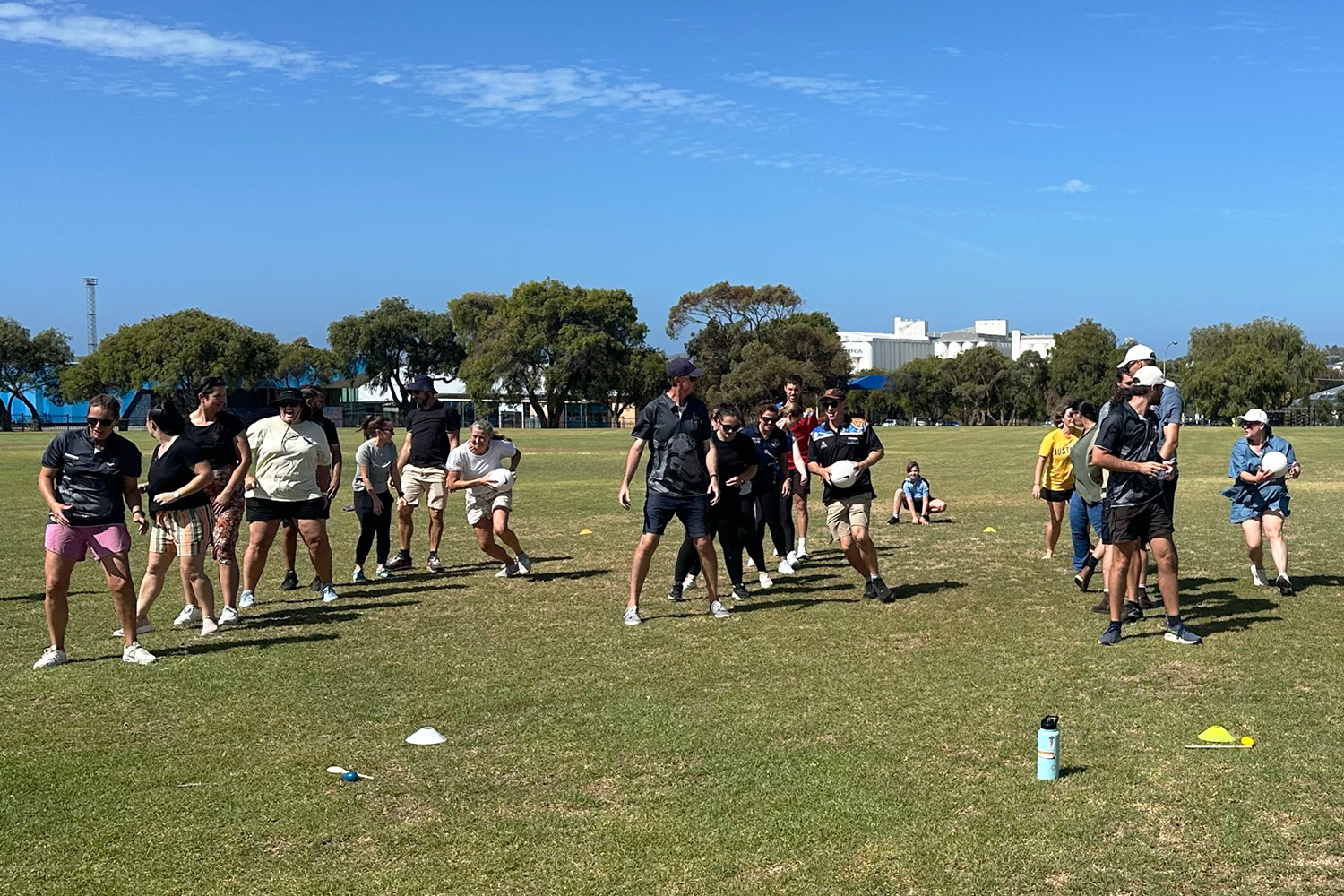 After a series of 100 metre “sprint” heats, staff rotated through the shot put, javelin and long jump disciplines, with each attempt earning valuable house points. To conclude the session, the four staff houses were pitted against each other in a highly competitive egg-&-spoon race and an overs-&-unders relay – if these events were to become exhibition “sports” at the 2032 Brisbane Olympics, we are ready to represent.