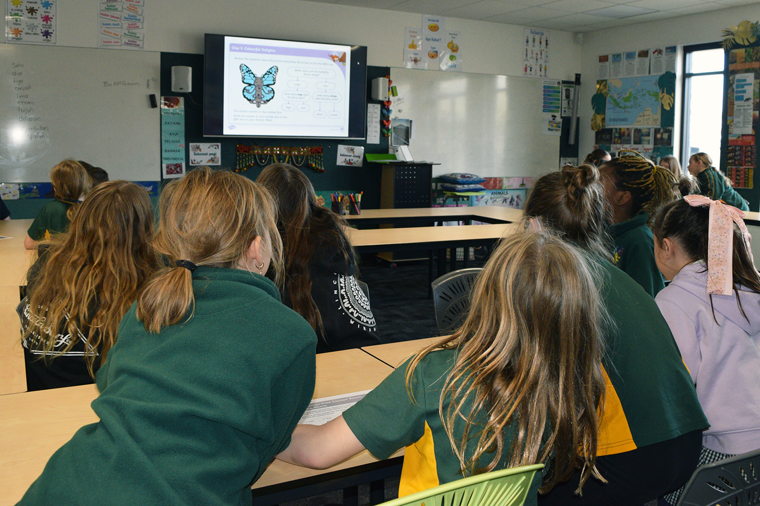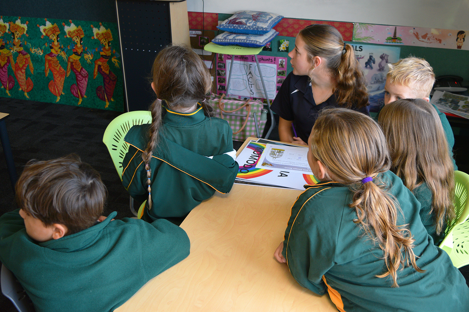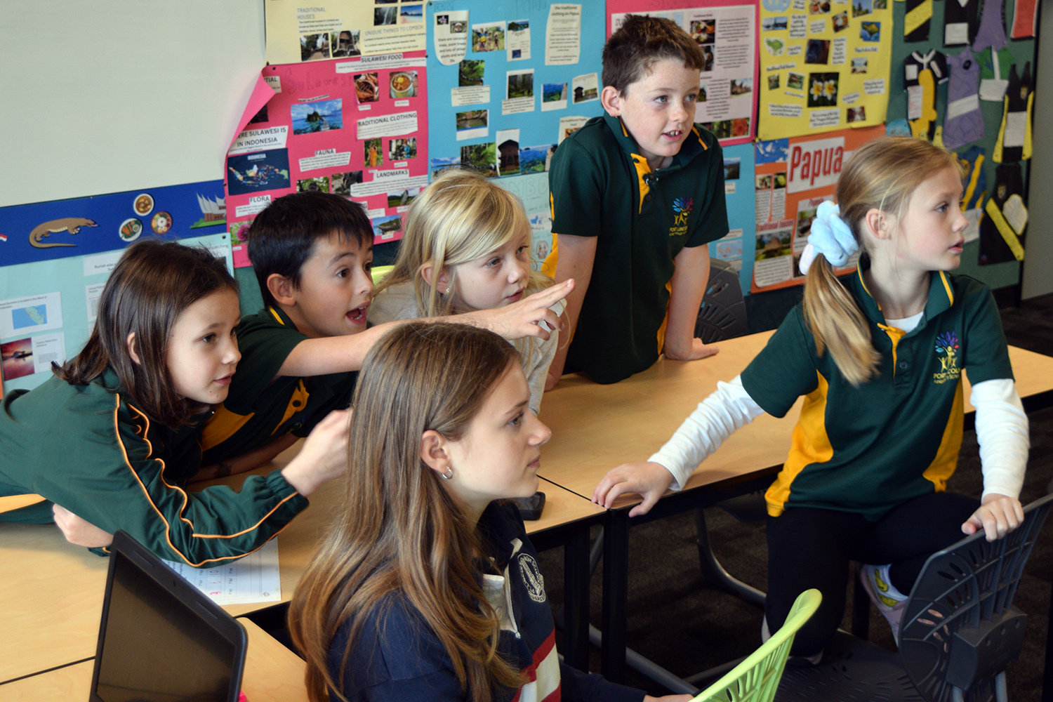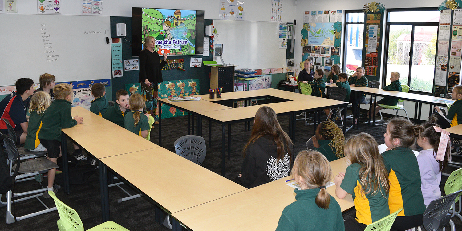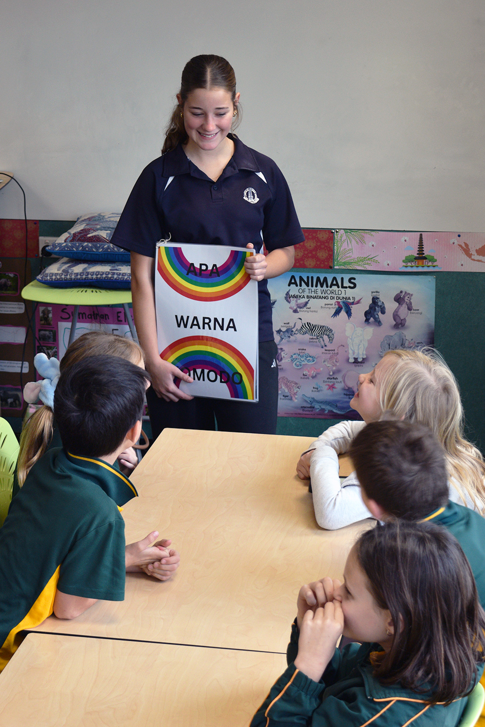 Earlier today, Bu Portia Veldhuyzen and her Year 2 class from the Port Lincoln Junior Primary School visited our Indo classroom. During their visit, the following Year 9’s – Sienna Sizer, Lily Hale, Chelle Clark, Gracie Fraser, Melika Goldsmith-Doudle, Tyler Cowley and Ryley Gilchrist – read their books to small groups of Year 2 students and received some very constructive feedback and comments.