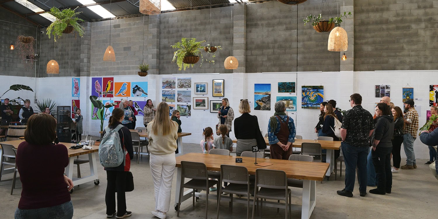 Our 2024 SALA exhibition – “Juvenescence” (the state of being youthful or of growing young) – was officially opened at Jump Ship Brewing last night before a large crowd.