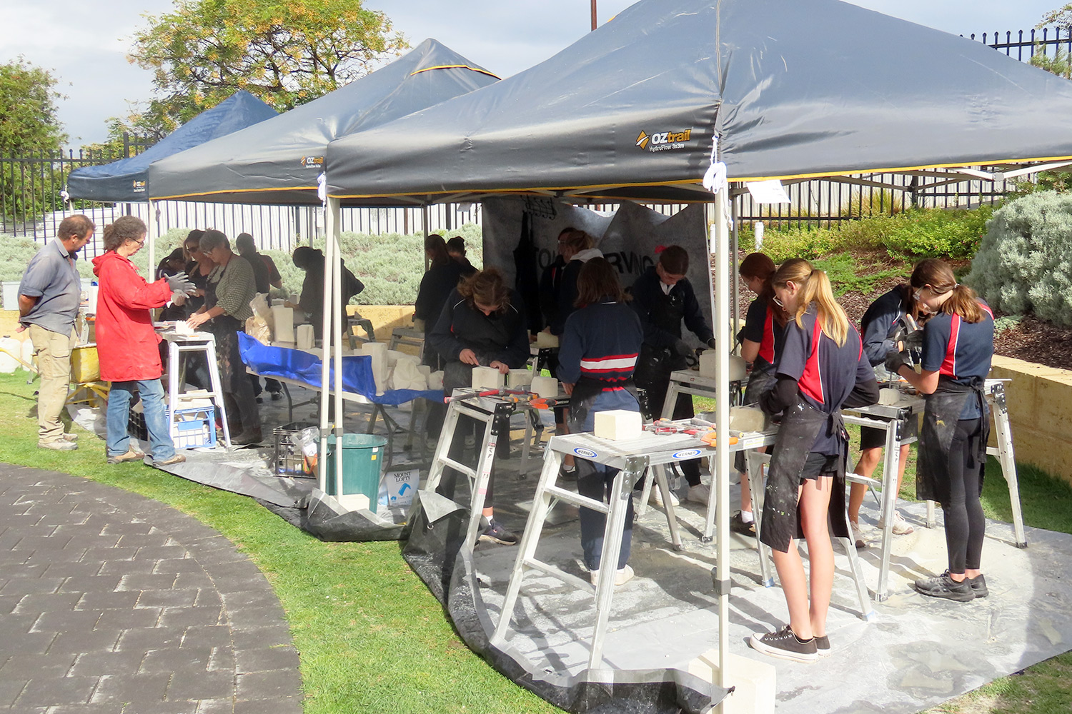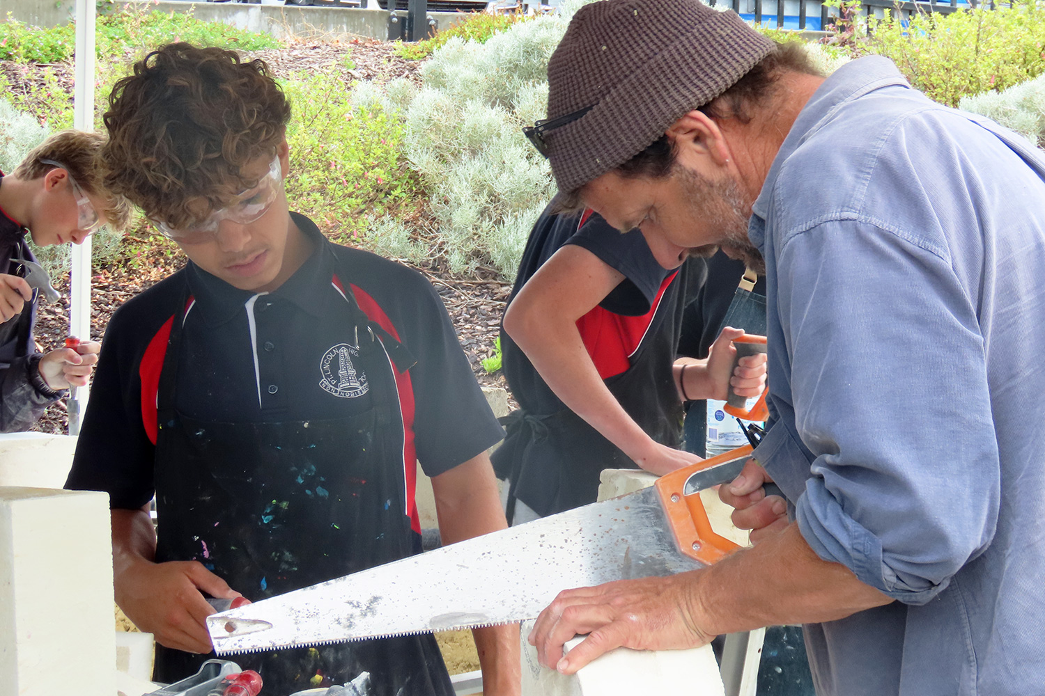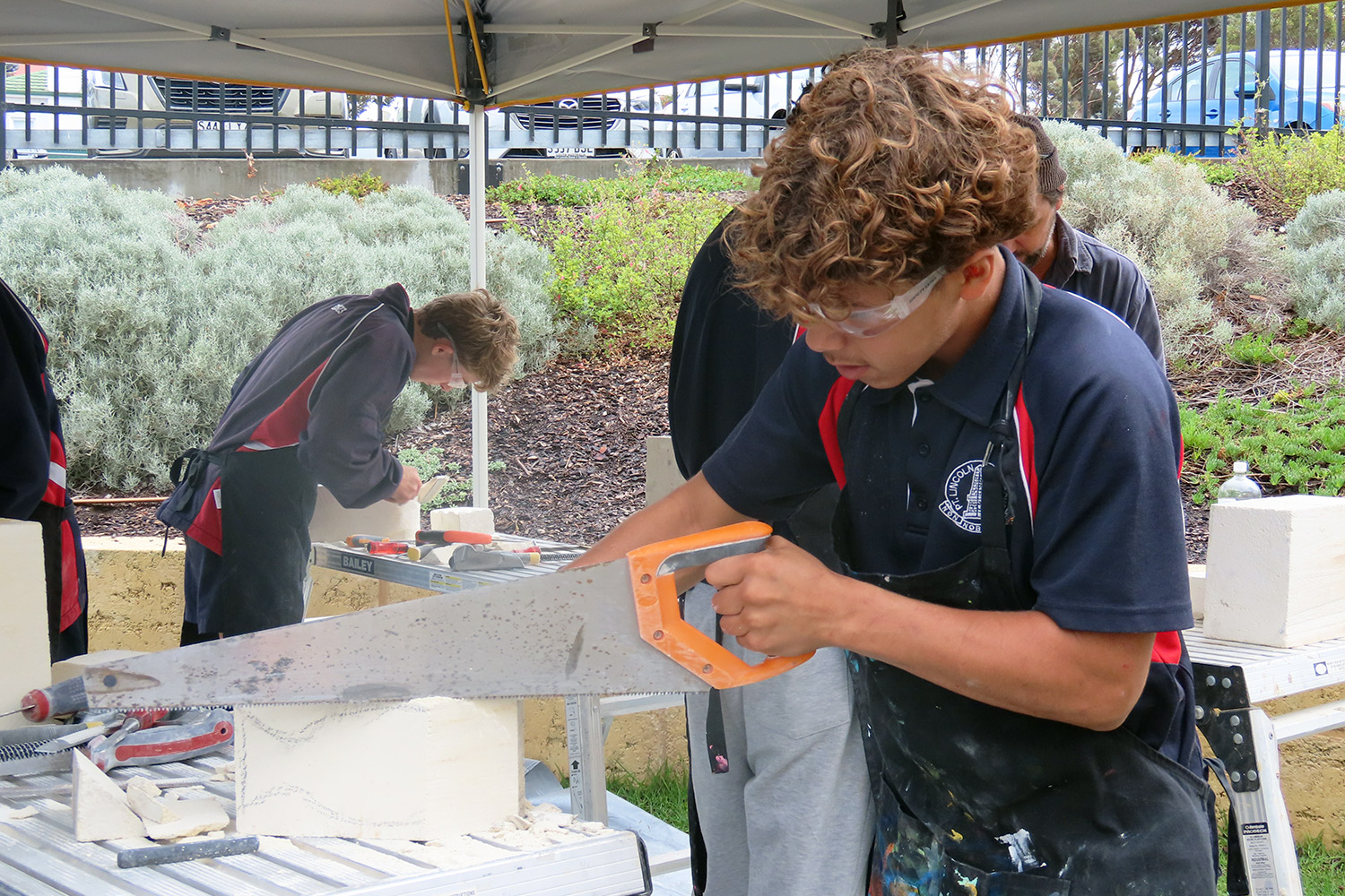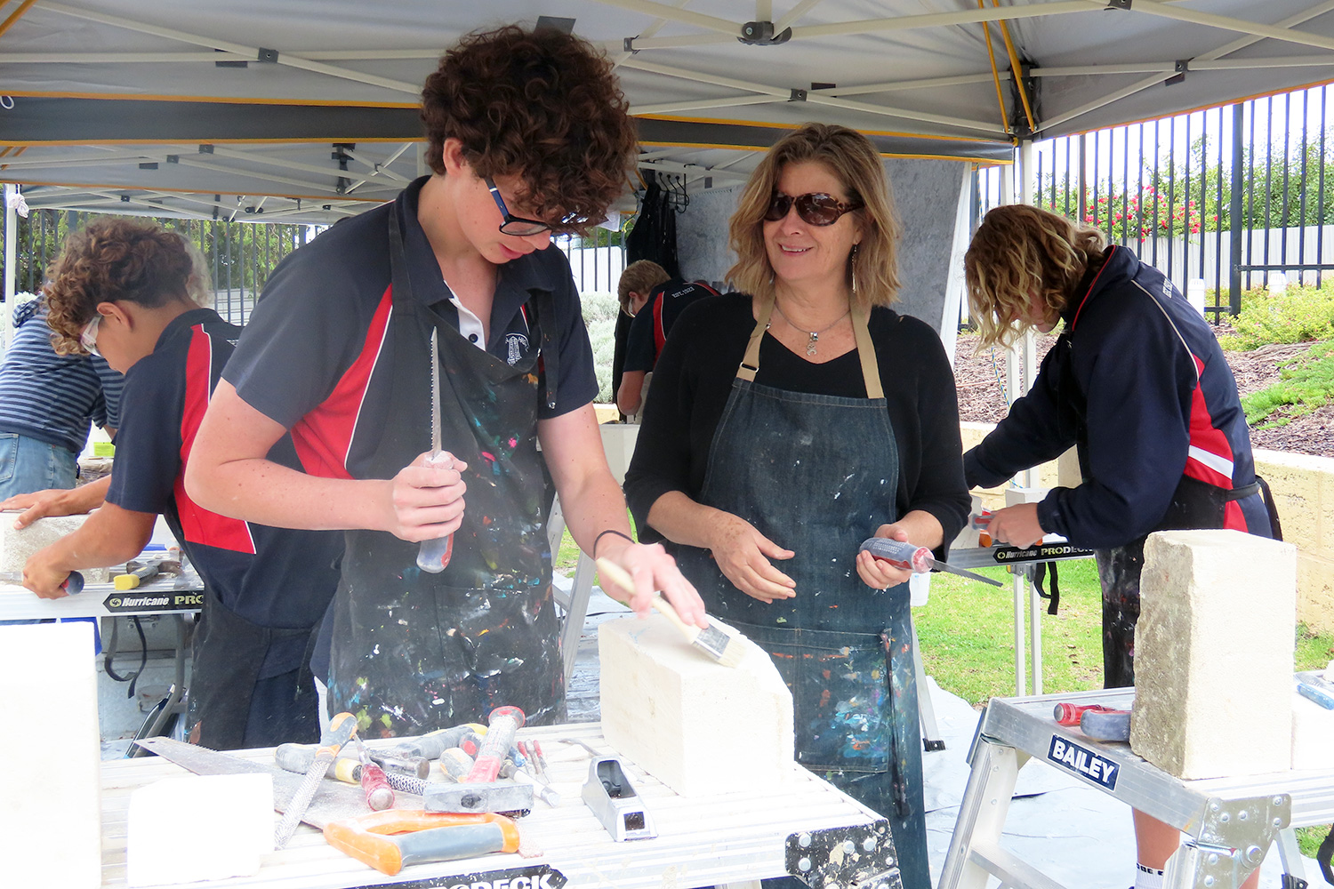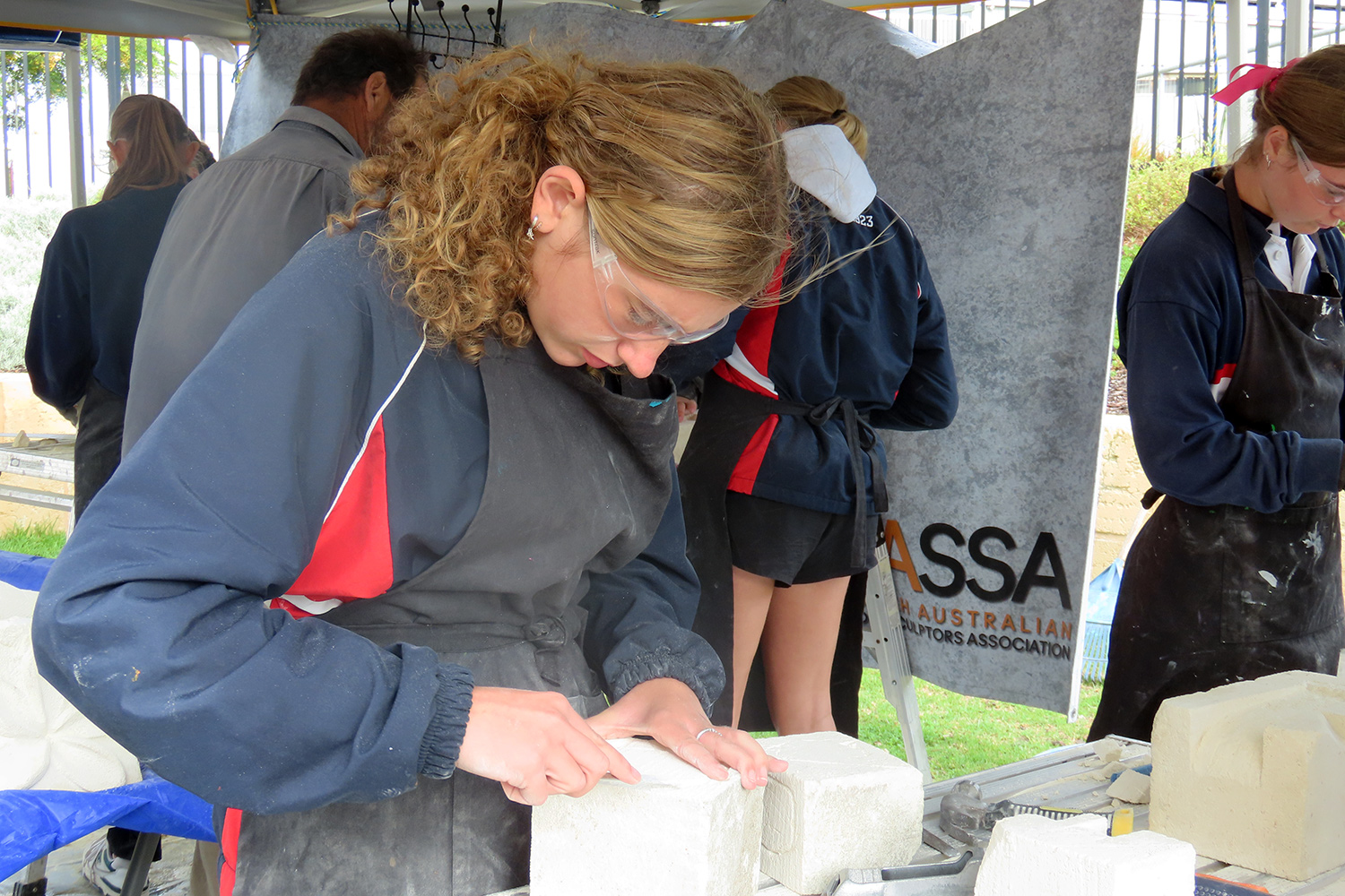 The SA Stone Sculptors’ Association (SASSA) received funding from an Adelaide-based charitable trust to present a soft limestone carving ‘come & try’ workshop during Port Lincoln’s recent SALT Festival. In the following days, five workshops were conducted on site at Port Lincoln High School for students from PLHS, our Transition & Learning Centre and Saint Joseph’s School.