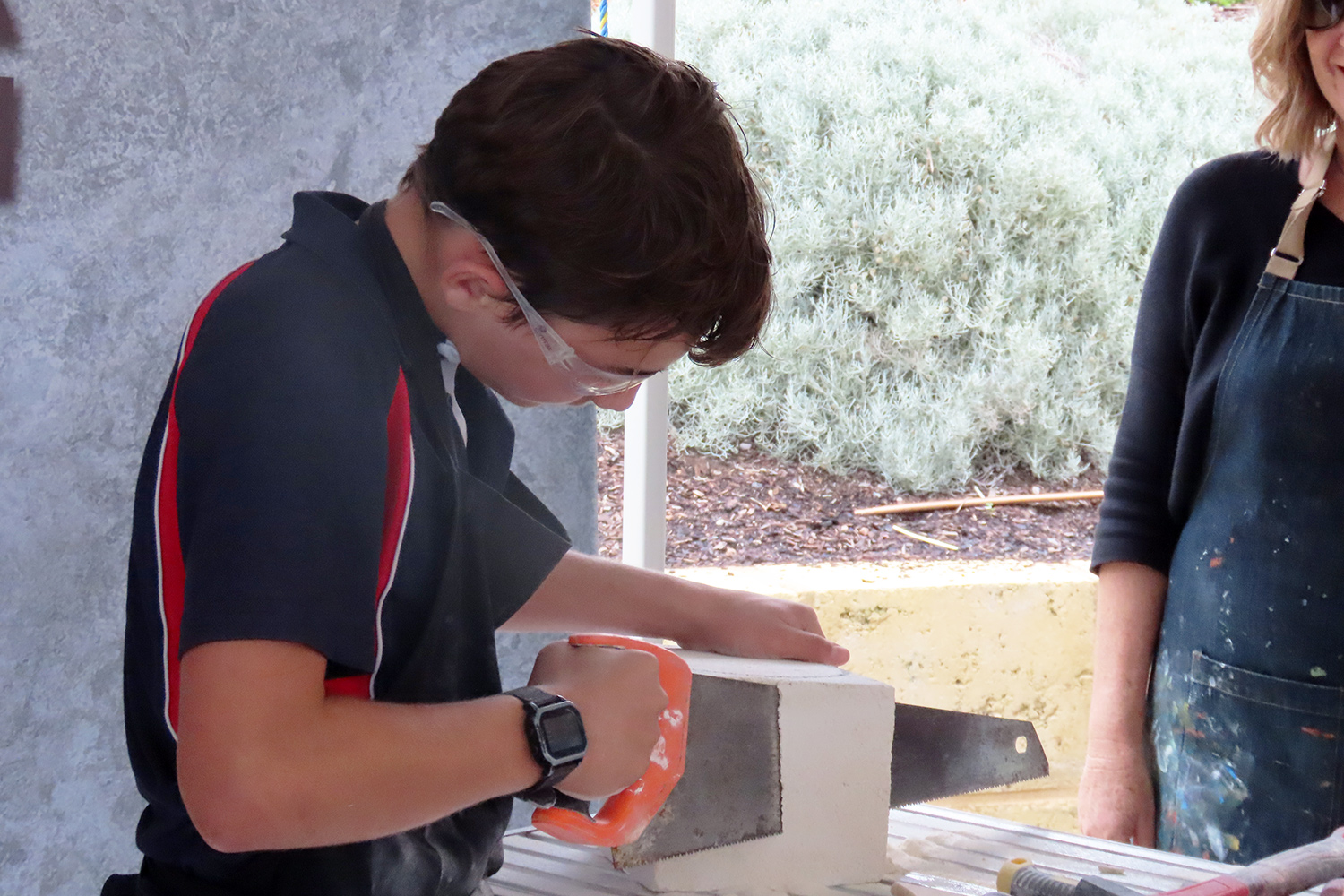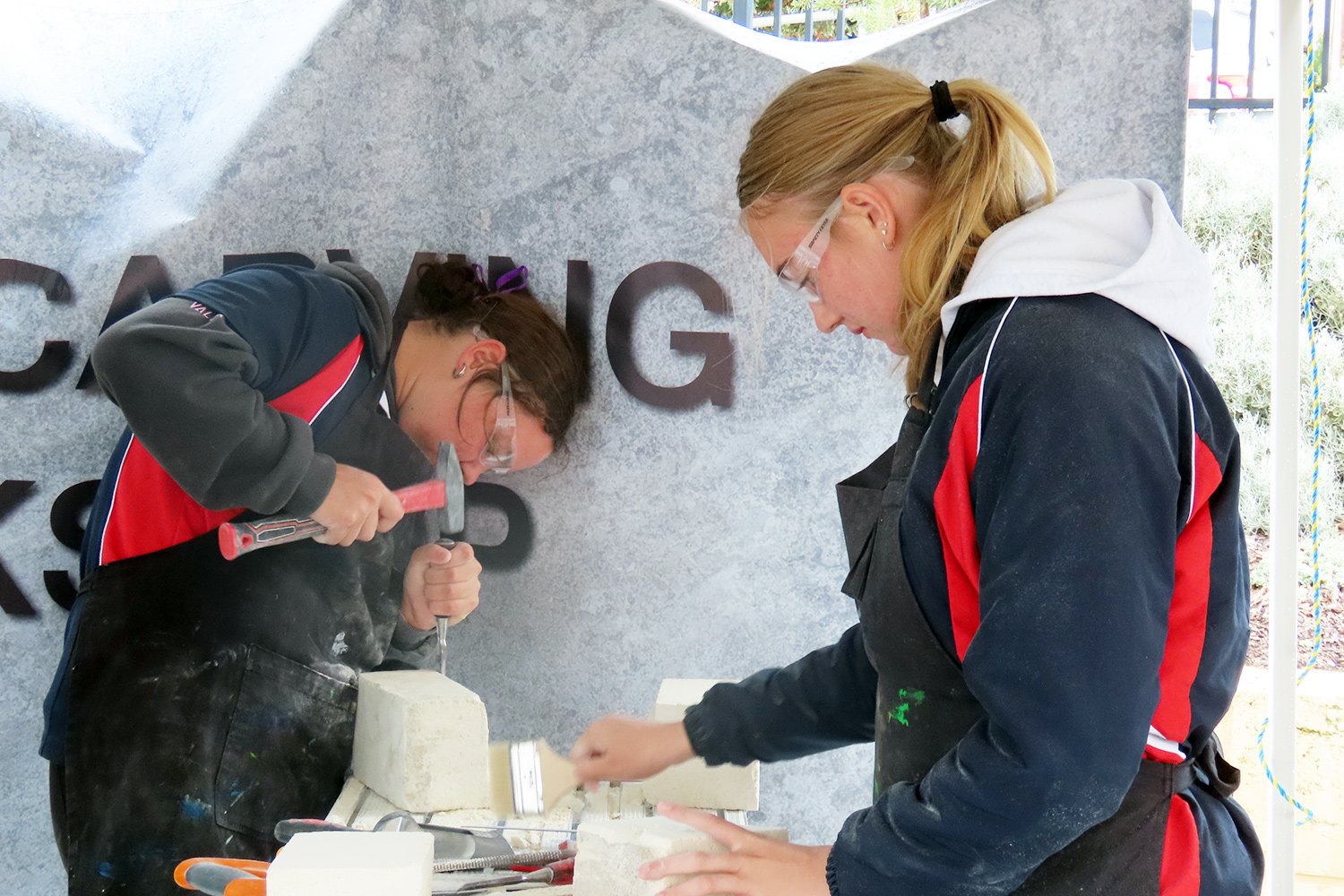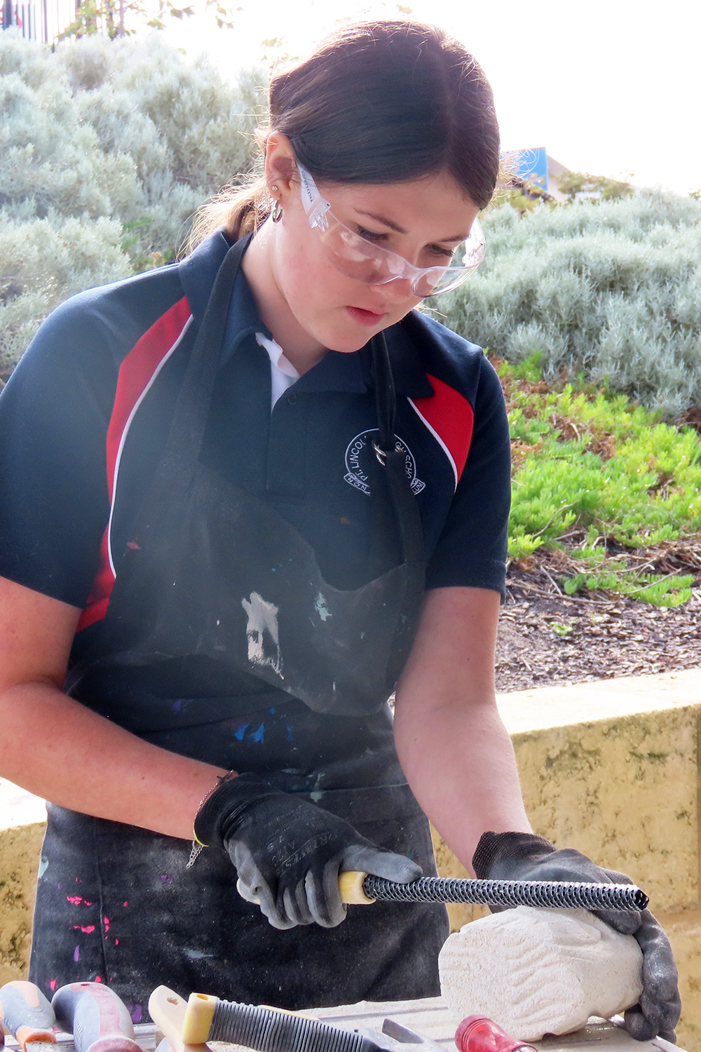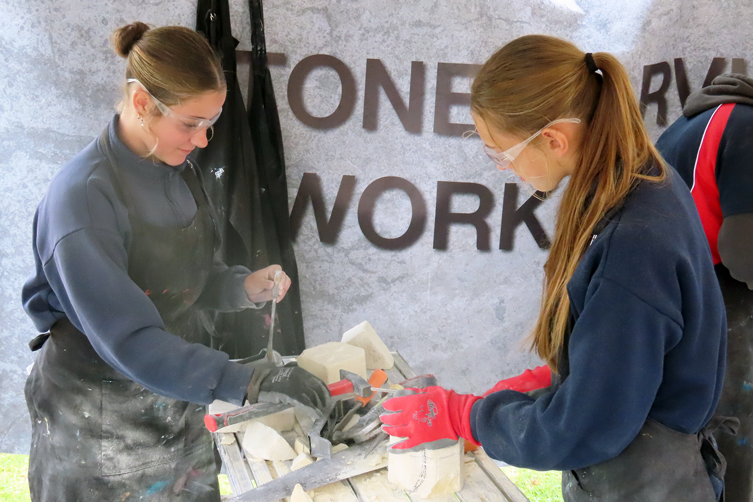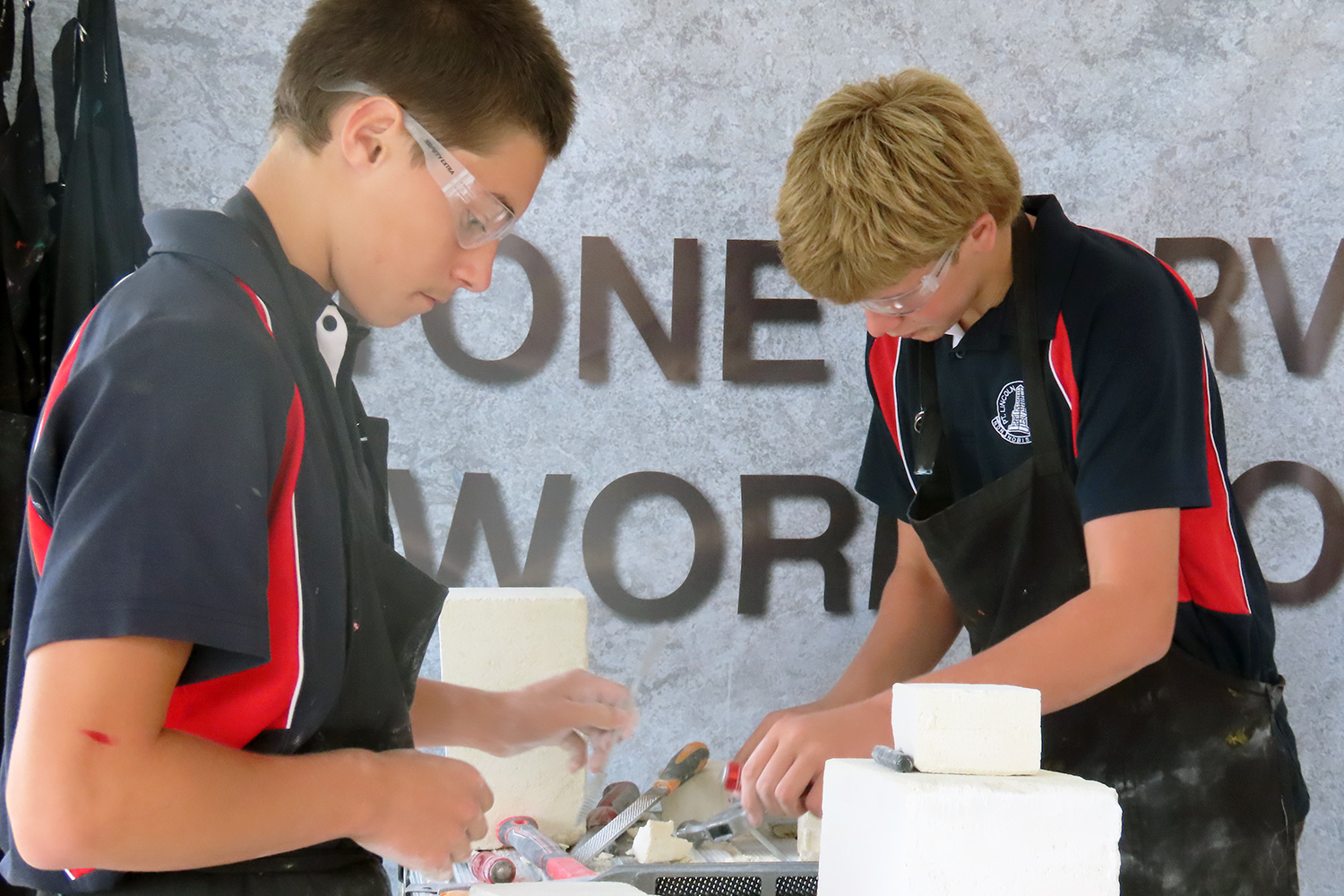 The SA Stone Sculptors’ Association (SASSA) received funding from an Adelaide-based charitable trust to present a soft limestone carving ‘come & try’ workshop during Port Lincoln’s recent SALT Festival. In the following days, five workshops were conducted on site at Port Lincoln High School for students from PLHS, our Transition & Learning Centre and Saint Joseph’s School.