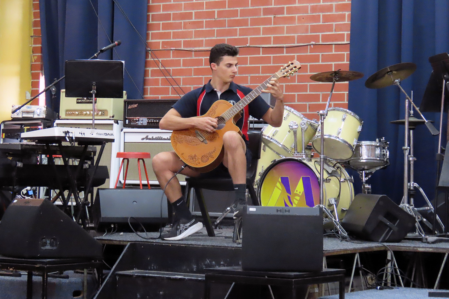 We have recently managed to set up the band equipment inside the PLHS Hall and plan to demonstrate it to patrons at our upcoming Open Night (Wednesday March 26th 5~7pm). The school is in the process of organising a large window to be installed between two of the rooms upstairs in our Performing Arts Centre to best utilise the recording equipment.