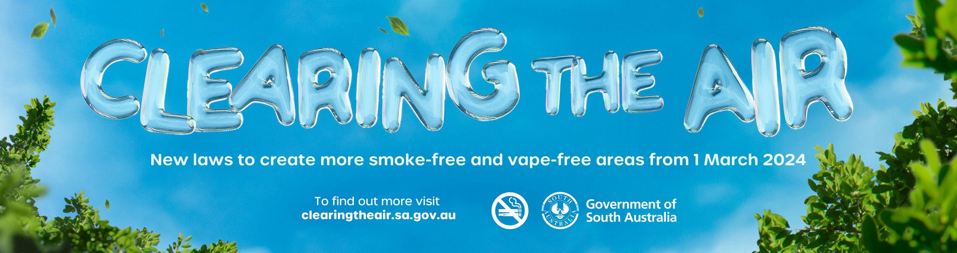 From 1 March 2024, new laws ban smoking and vaping in a variety of public outdoor areas in South Australia. Regulations under the South Australian Tobacco and E-Cigarette Products Act 1997 (PDF 1254KB) are being introduced to address risks associated with passive tobacco smoking and passive inhalation of e-cigarette aerosol.