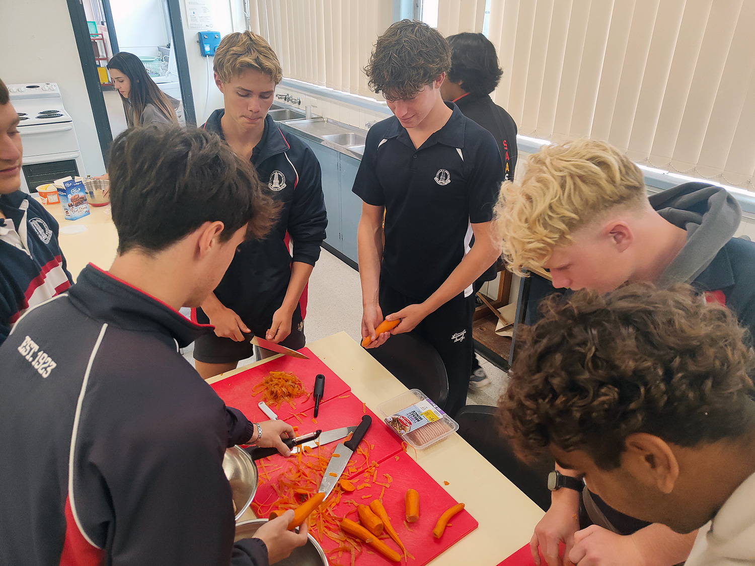 Firstly, thank you to my Stage 1 Essential Math students – Jesse Baldock, Cruz Brown, Kordell Buzzacott, Darcy Edwards, Amelia Da Cunha, Amelia Fiebig, Mia Fiore, Teata-Mai McDonnell, Lloydey McLean, Isacc Sampson, Toby Sizer, Oliyena Thomas, Mahlia Vlassco, Piper Wahlin and Natania Watene – for peeling potatoes, cooking sausage rolls, baking brownies and making a veggie bake.