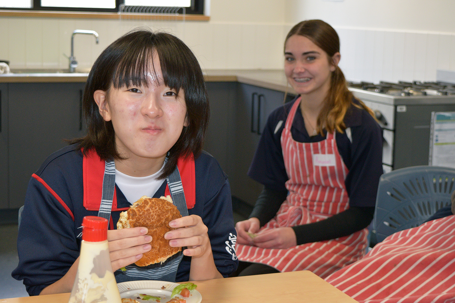 - Cooking with Mrs. Kylie George’s Year 10 Food Technology class – the resulting “oishii” kangaroo burgers were then eaten as shared lunch