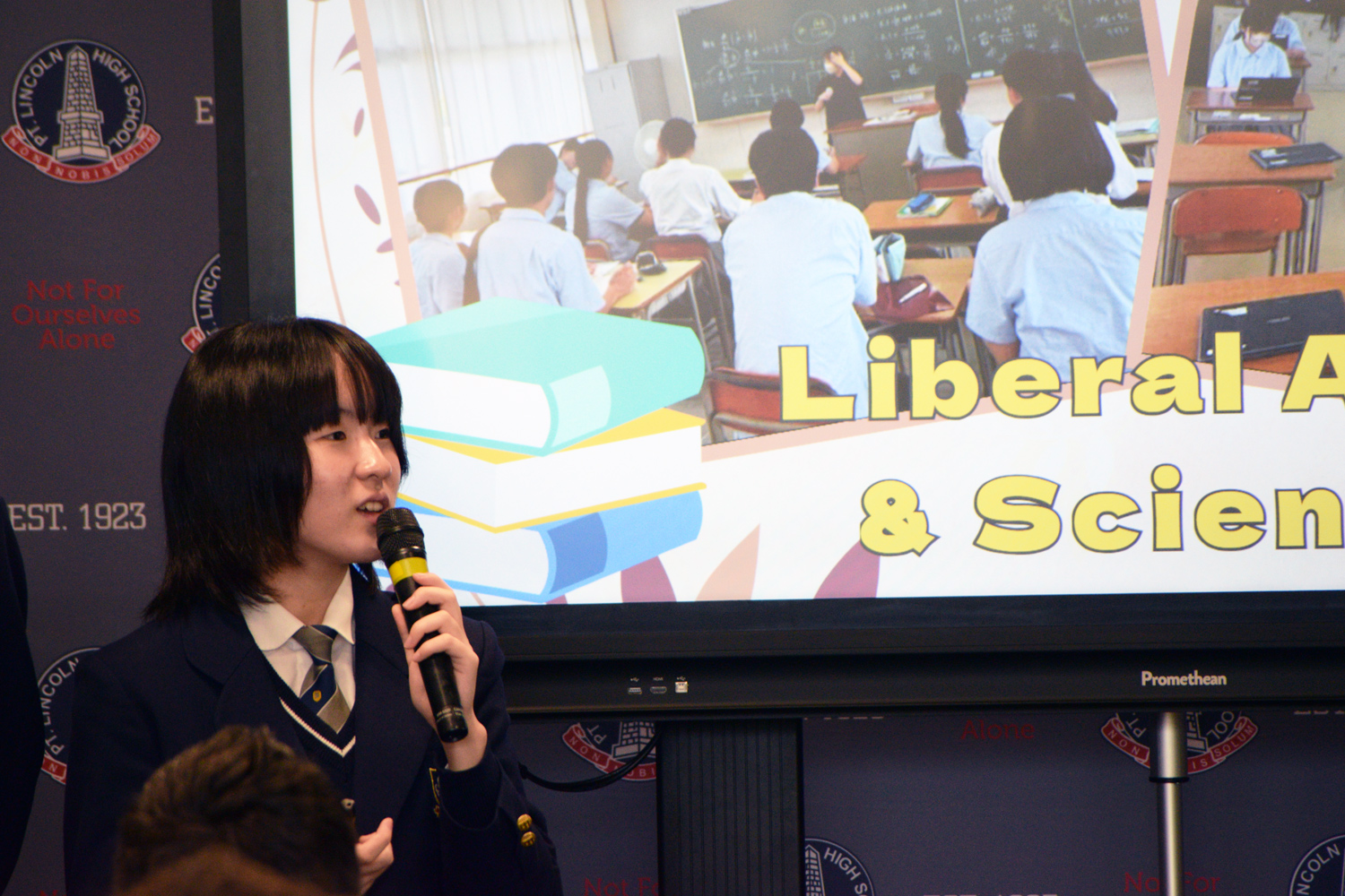 The four Muroto HS students then took centre stage. After introducing themselves, they delivered a thoughtful presentation about their school and nation – this included an interactive quiz for our students and was all spoken in impressive English! Following an official exchange of gifts between the two schools, the ceremony was brought to a close; after being congratulated for their efforts, the very relieved Japanese students were then given a relaxed tour of the PLHS campus by the students in Mr. Akira Inger’s Year 10 Japanese class.