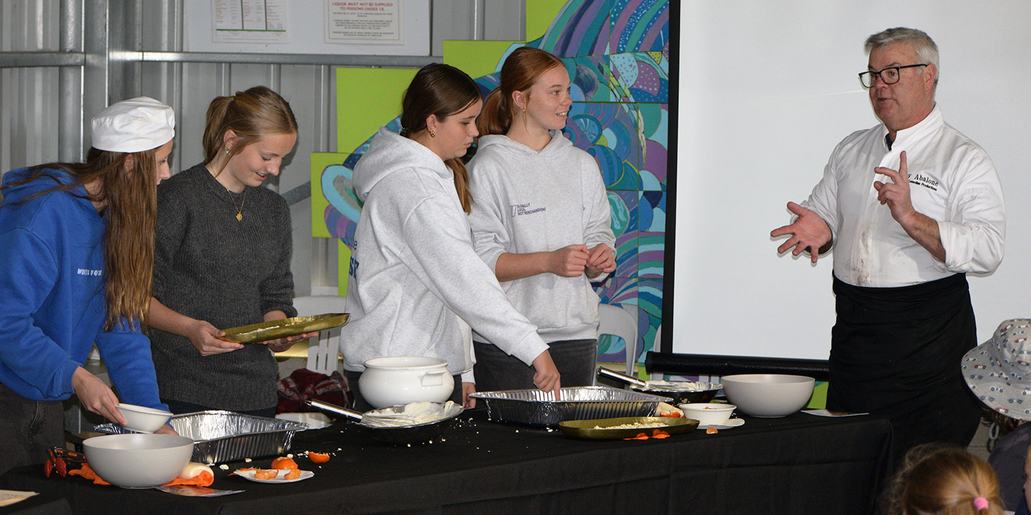 - eight PLHS students competing in a fun Kids’ Cooking Competition wonderfully hosted by local celebrity chef Tony Ford and Sardine Industry Association boss Claire Webber; well done to our four teams – Aiza Blayney & Mckenzie Doudle, Iesha Noack & Ari Weetra, Neve Thomas & Willoh Brown, and Skyler Little & Elsa Burgar – for participating, especially Skyler and Elsa who took out first prize