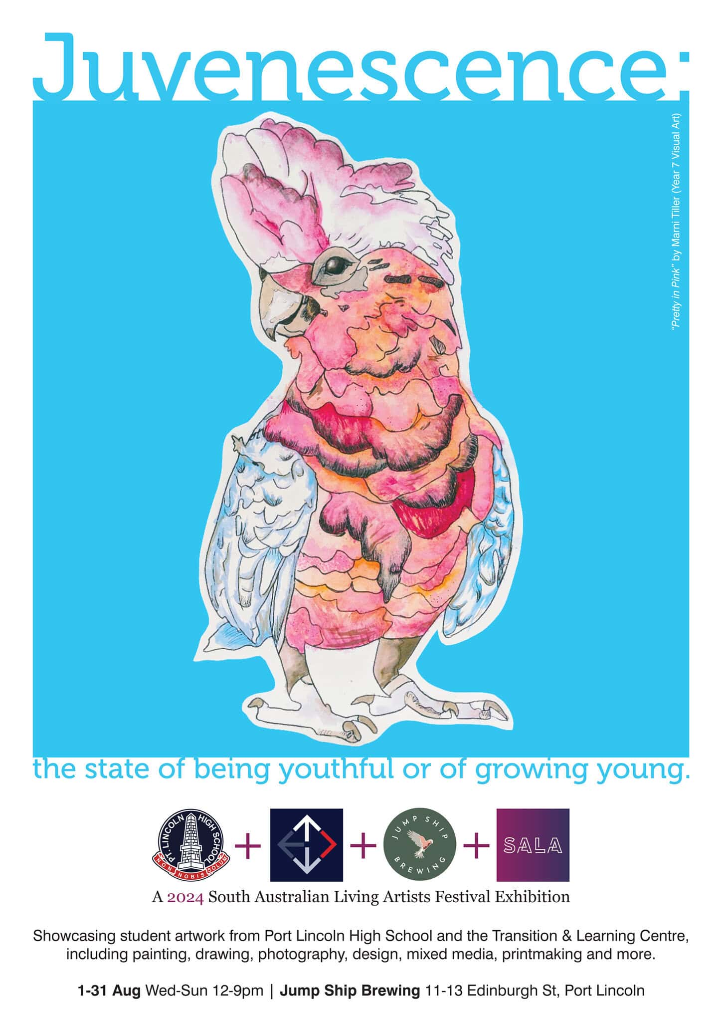 Showcasing student work from the Port Lincoln High School and the Transition & Learning Centre. Artwork ranges from painting, drawing, photography, design, mixed media, printmaking and more.