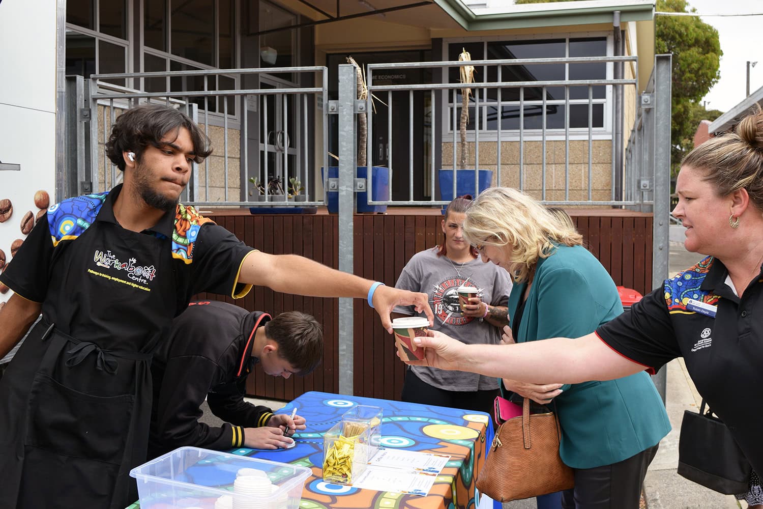 The third and final day was a community service day, where over 150 free coffees were served this morning to members of the community, families, school and Department for Education staff, and representatives from organisations such as West Coast Youth and Community Support and Port Lincoln Aboriginal Health Services – the school was also honoured to receive a visit from Mayor Diana Mislov.