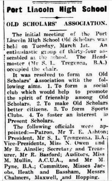 Port Lincoln High School is delighted to announce that in one month’s time, we will revive our Old Scholars’ Association with an official launch event at the Port Lincoln Hotel.