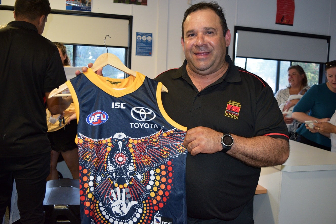 One of the evening’s presenters was Clontarf Employment Officer Eddie Hocking. Eddie was the first Indigenous player to represent the Adelaide Crows, and played in the club’s first AFL game against Hawthorn in 1991. Earlier this year, Eddie designed the striking Adelaide Crows 2020 Indigenous guernsey – he generously awarded one of his jumpers to this year’s “Deadly Bloke”, Borrice Betts.
