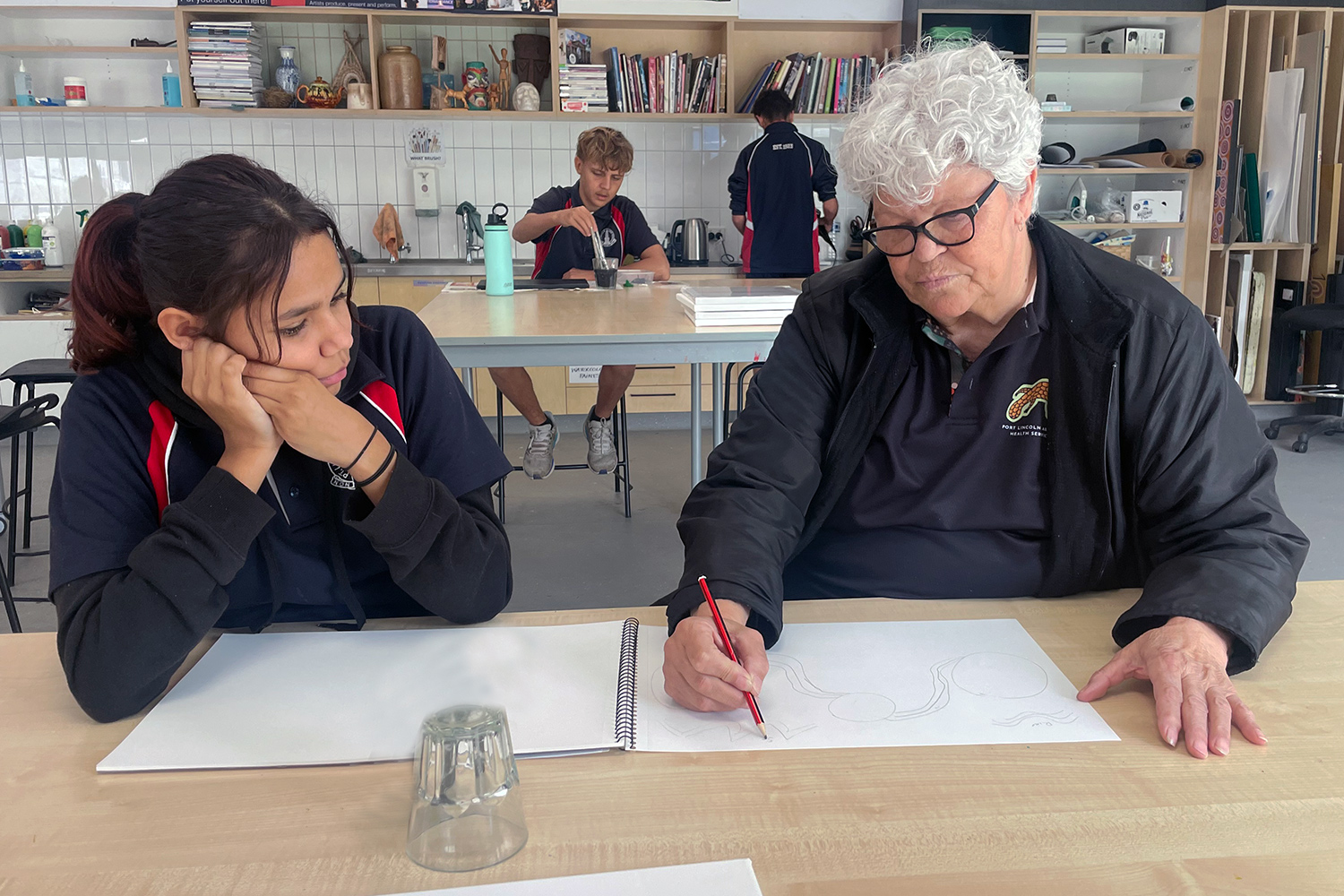 Yesterday, our Year 9 SAASTA Connect students met with representatives from Port Lincoln Aboriginal Health Services and some local Elders to engage and share knowledge for their latest art project.