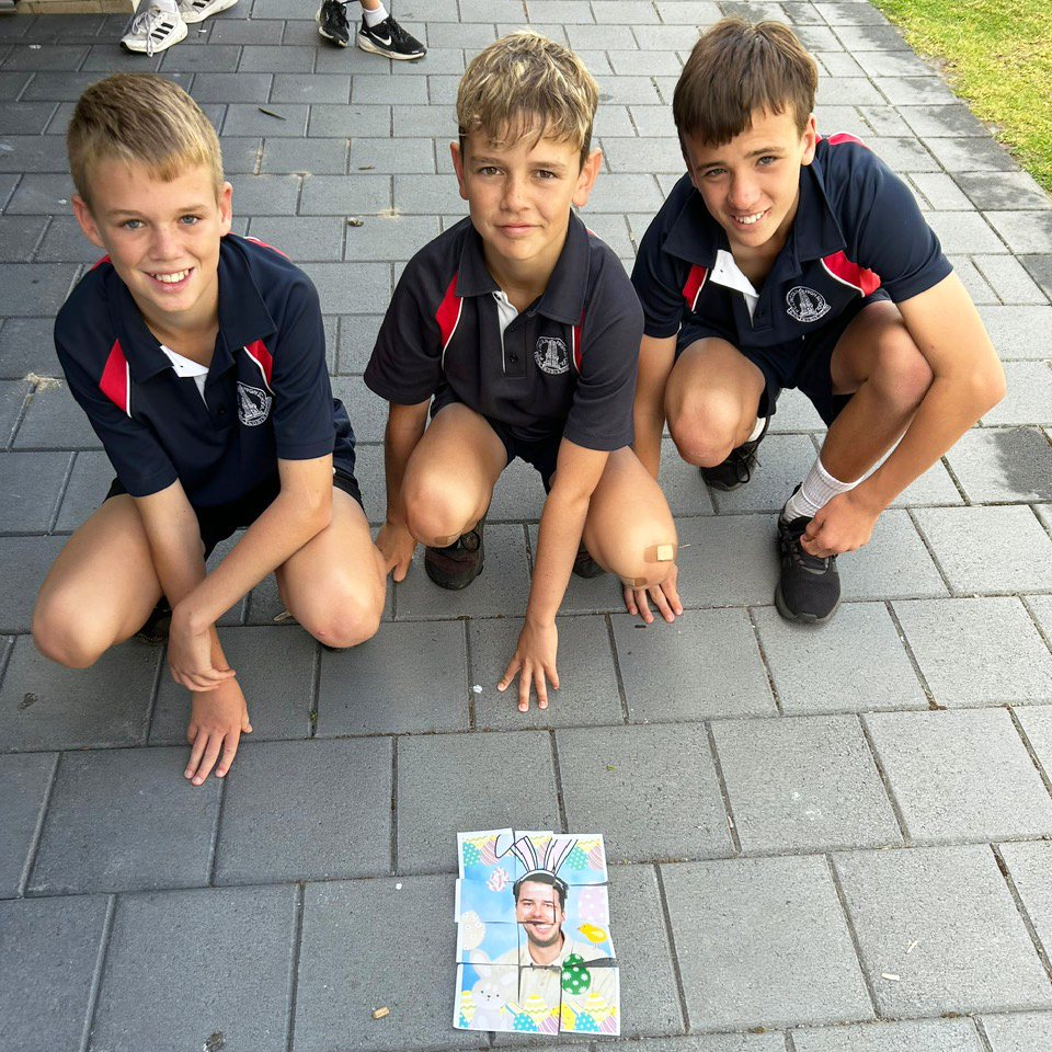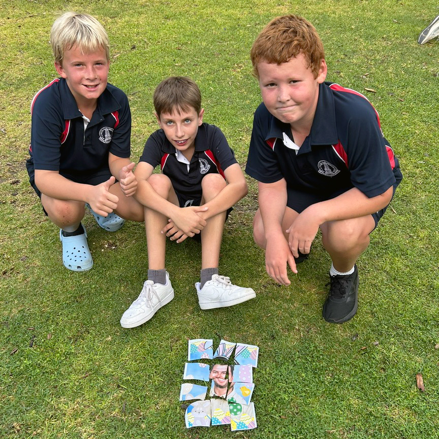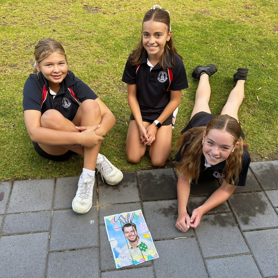 They collected puzzle pieces at each stop, culminating in the Year 7 block where they assembled a puzzle of the Easter Bunny, who looks suspiciously like Assistant Principal Mr. Angus Martin.