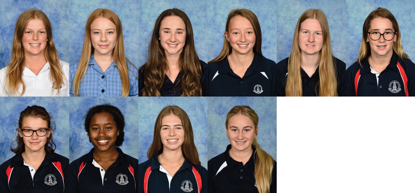 (from top left) Wayan Horlin-Smith, Eliza Hartwich, Ella Thomson, Ebony Plane, Lily Miranda, Summer Retallick-Blackberry, Charli Barrowcliff, Natasha Tothill, Tahlia Weir, Meg Wright, Grace Thomas, Jayden Kotz, Luke Ellis, Kiah Bray, Angelia Christian, Kahsha Judge, Kade Mullins & Aidan McGrath