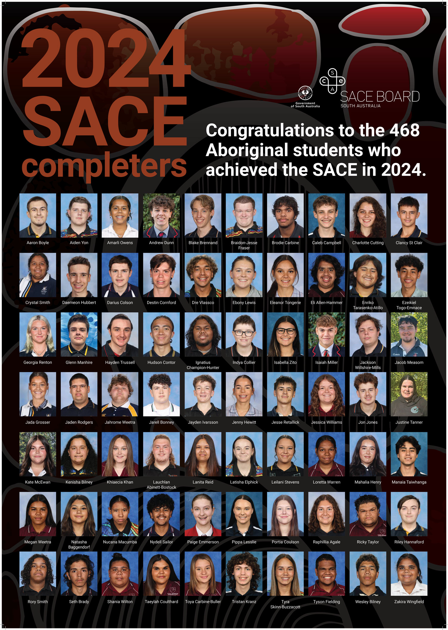 Last year, 468 Aboriginal students from SA and the NT completed their SACE. Those students were given the opportunity to have their photo included on the annual Aboriginal SACE Completers poster which is sent to every school in SA and NT