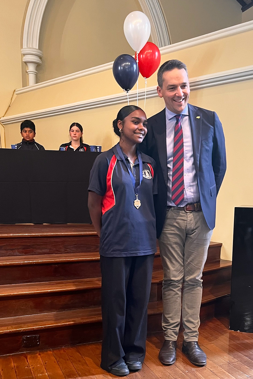 Representing the five-person adjudicator panel, ABC Radio announcer Jules Schiller announced the Navigator College team as victorious over our gallant Lions by one point! Congratulations to the Stingrays students and their organising/accompanying staff.