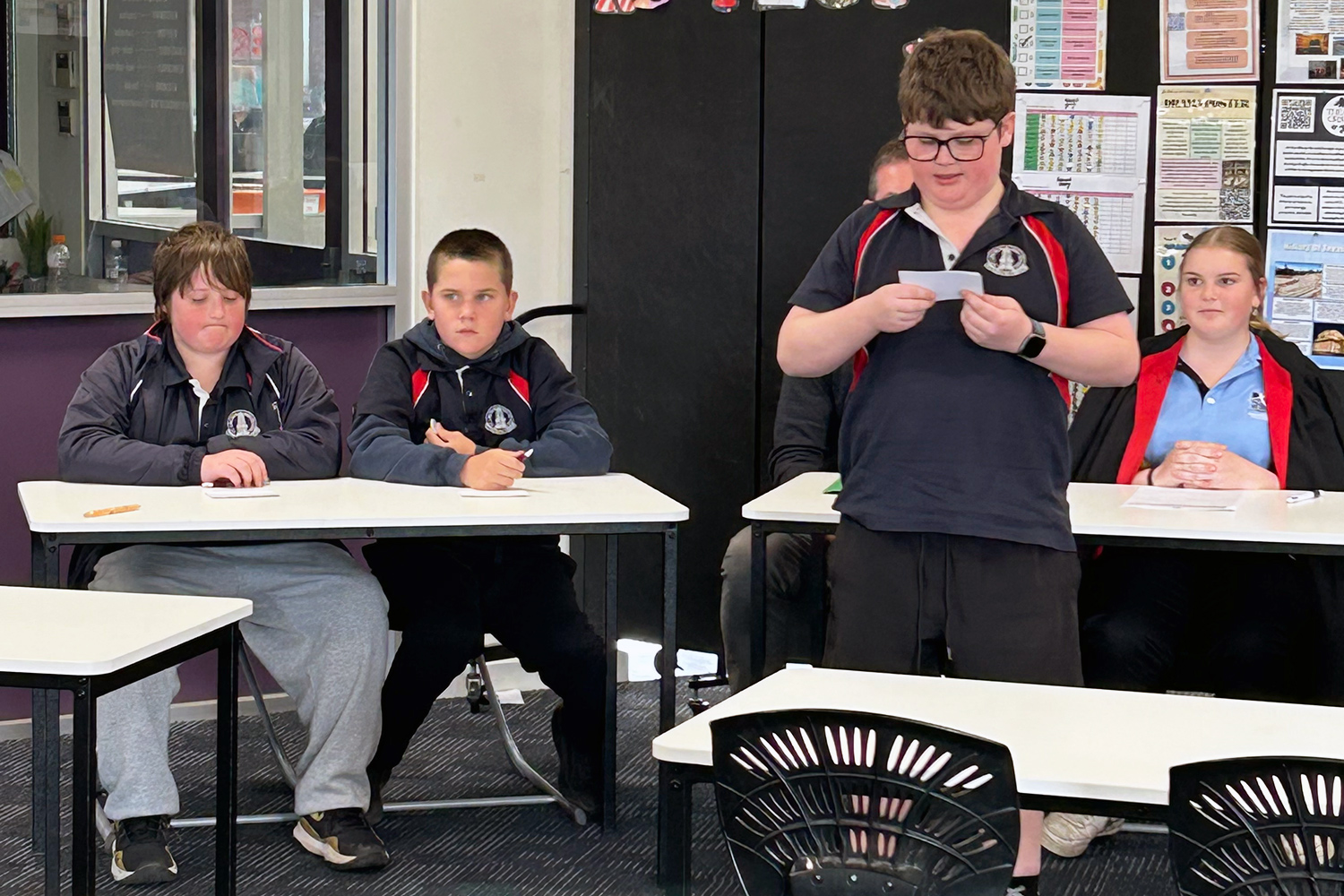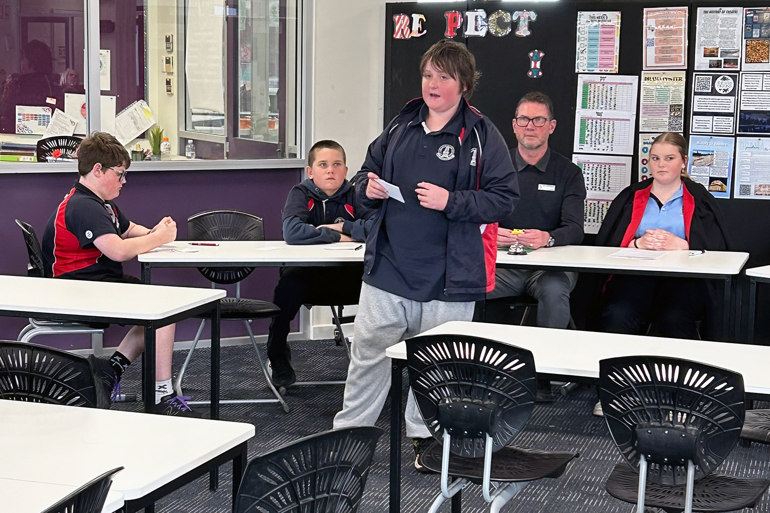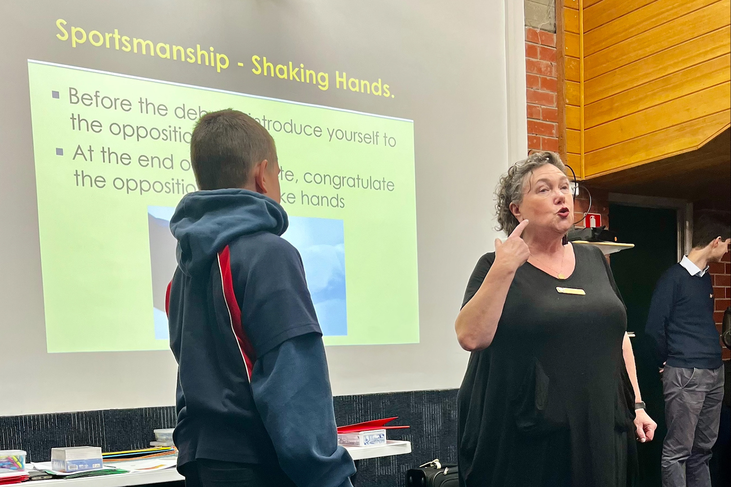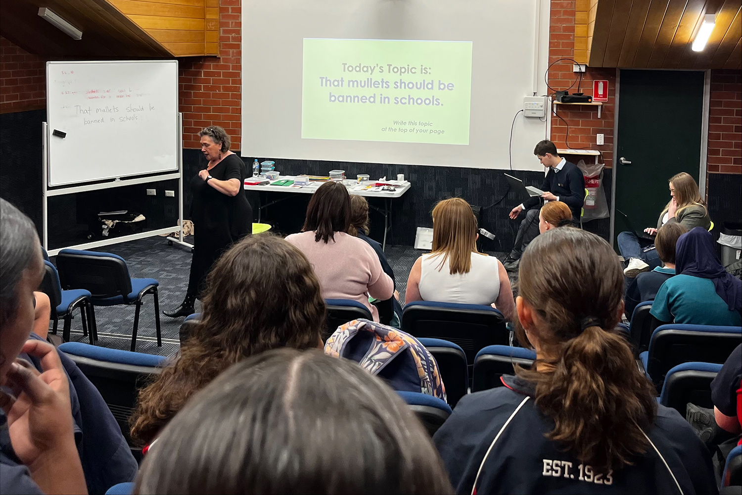 Students learnt the basics of debating, including a firm handshake (not like a ‘dead fish’), formal greeting (Madam/Mister Chairman), argument structure, as well as a host of tips for good public speaking. Choosing to be either first, second or third speaker, students were asked to plan a debate in either Affirmative or Negative for the statement: Mullets should be banned in schools.