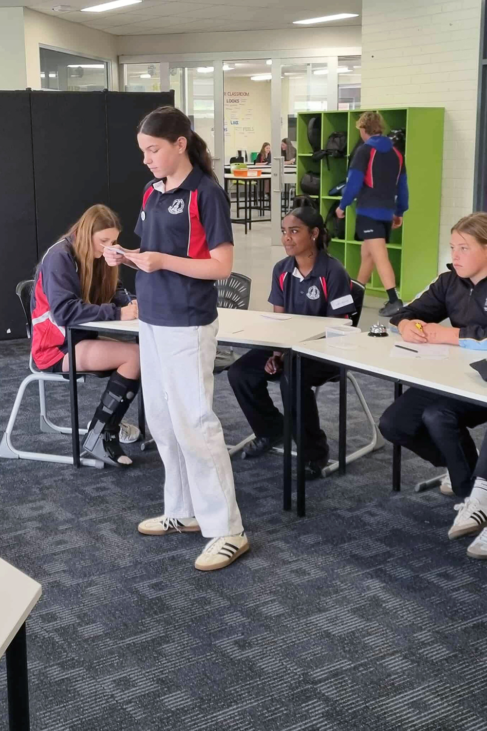 Year 7 and 8 students from our site, as well as some from St. Joseph’s School and Navigator College, were privy to the expert training from Sonja Lowen, Charlotte Boyd-Turner and Ilya Aidman, who travelled across from Debating SA in Adelaide.
