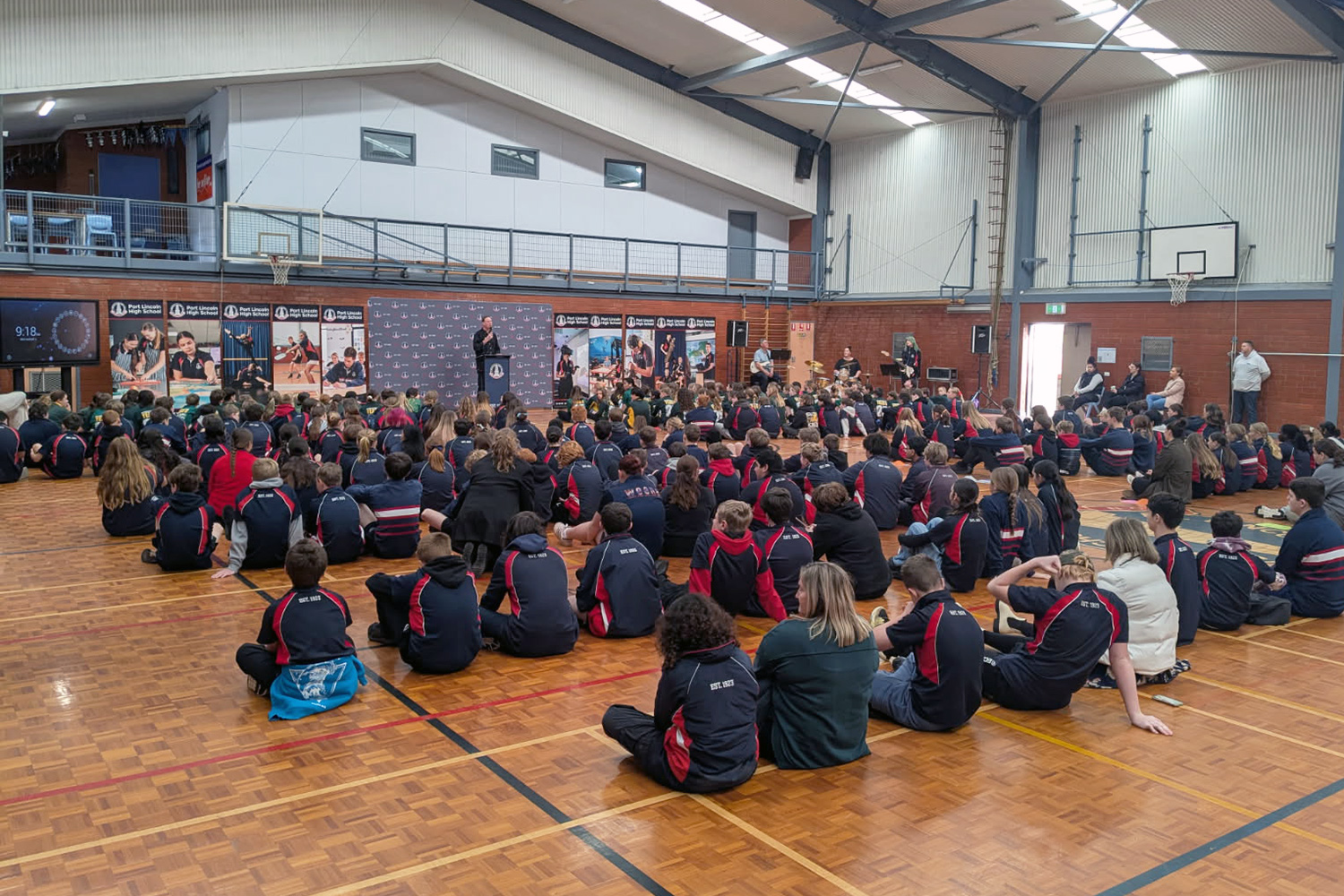 A Year 7/8 Channel Assembly was staged into the PLHS Gymnasium during this morning’s long Dharna session – this event trialled an alternative method for promoting our consistent themes of success and belonging. As well as the Year 7 and Year 8 Dharna Crews in attendance, we were delighted to host some of the students’ parents, plus the Year 6 students from the Port Lincoln and Lincoln Gardens Primary Schools.