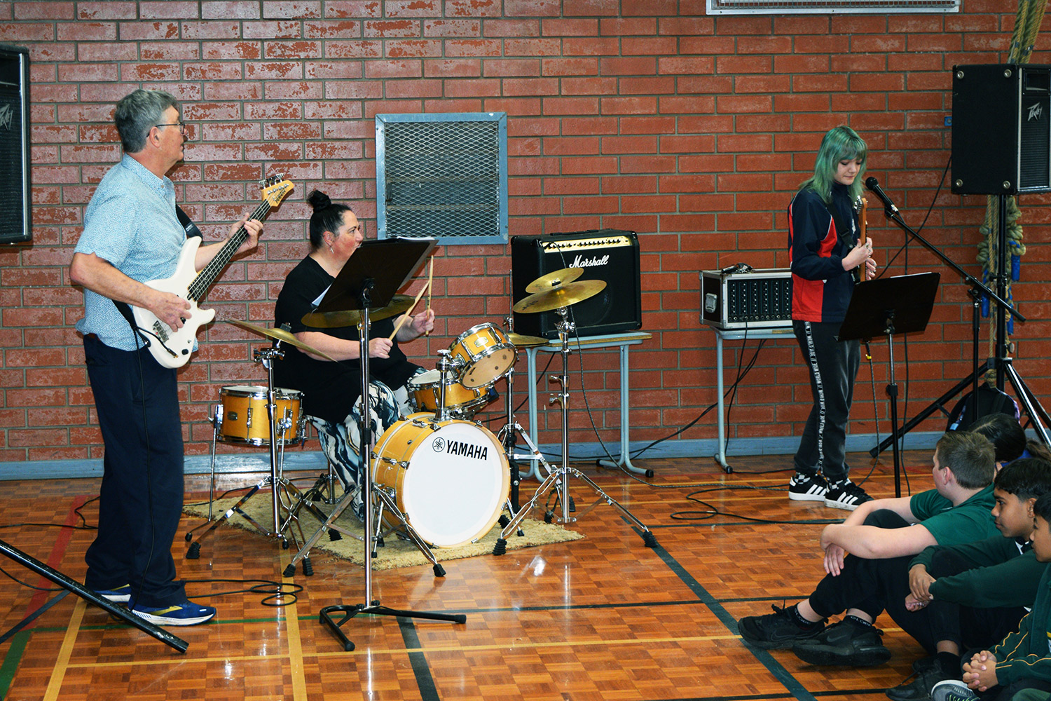 To ensure that the audience was thoroughly entertained, Year 11 Music student Summer Thorpe brilliantly performed songs before, during and after the assembly – she was wonderfully supported by Music teachers Mr. Stephen Campbell and Mrs. Helen Marks (who deserves a special mention for filling in on the drums at short notice – onya, Hels!). Finally, a clip from “Alter Oscillate” – last term’s incredible PLHS Dance Production – was also screened.