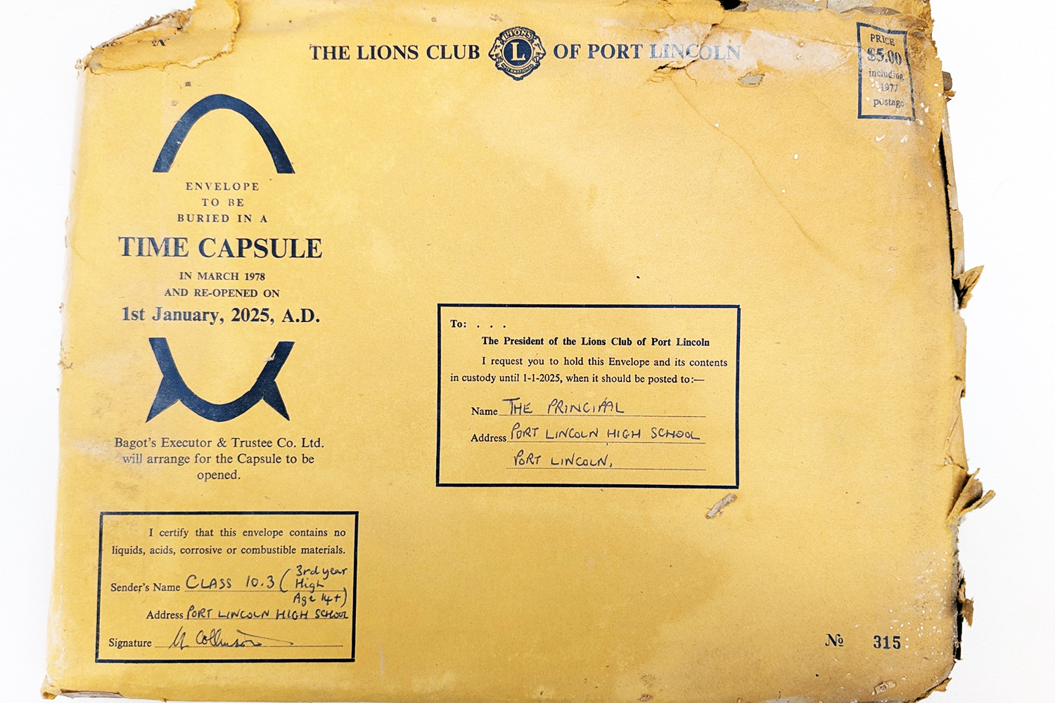 A copy of that article can be found here: Two Envelopes for PLHS Inside Lions Time Capsule – Port Lincoln High School