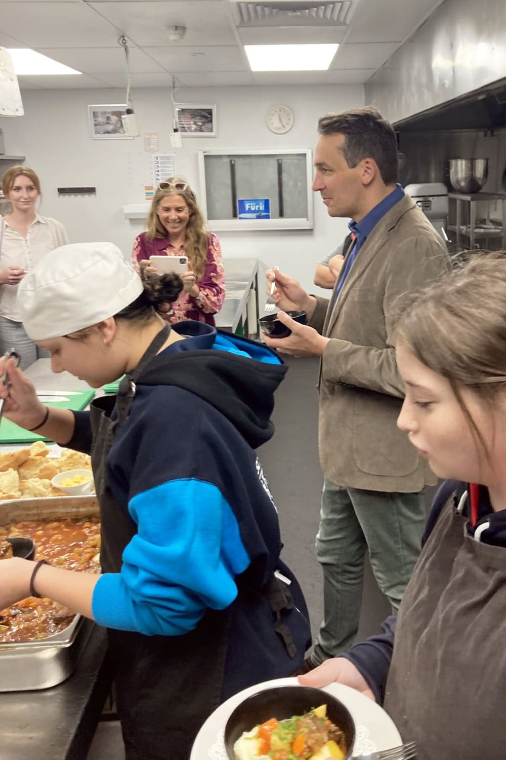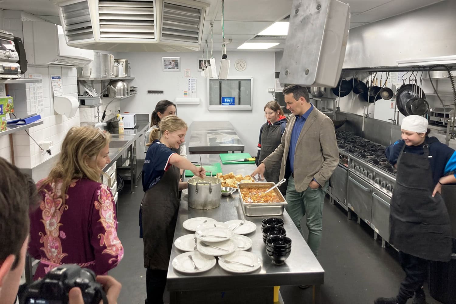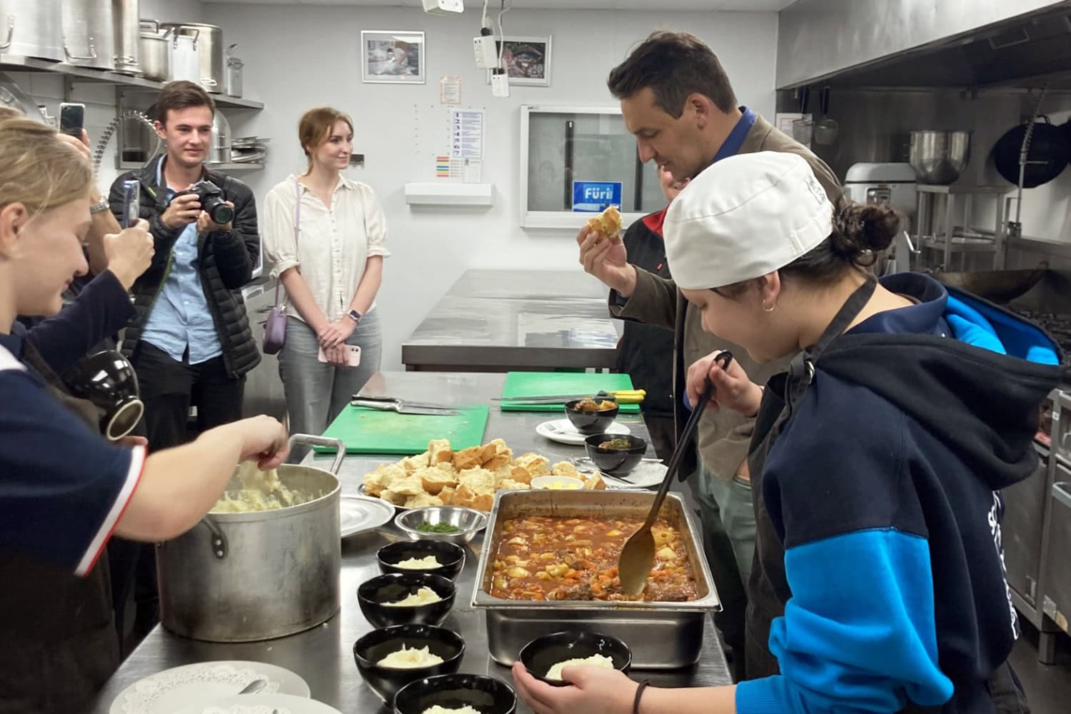 As Head Chef, Year 11 student Shahni Blythman chose the menu for the day; she prepared kangaroo tails (including skinning and removing the sinew) for a delicious stew, as well as making damper. Meanwhile, Bella Meffert (Year 11) and Reegan Pelkonen (Year 12) prepared the vegetables and helped serve the meal to the Minister and his entourage.