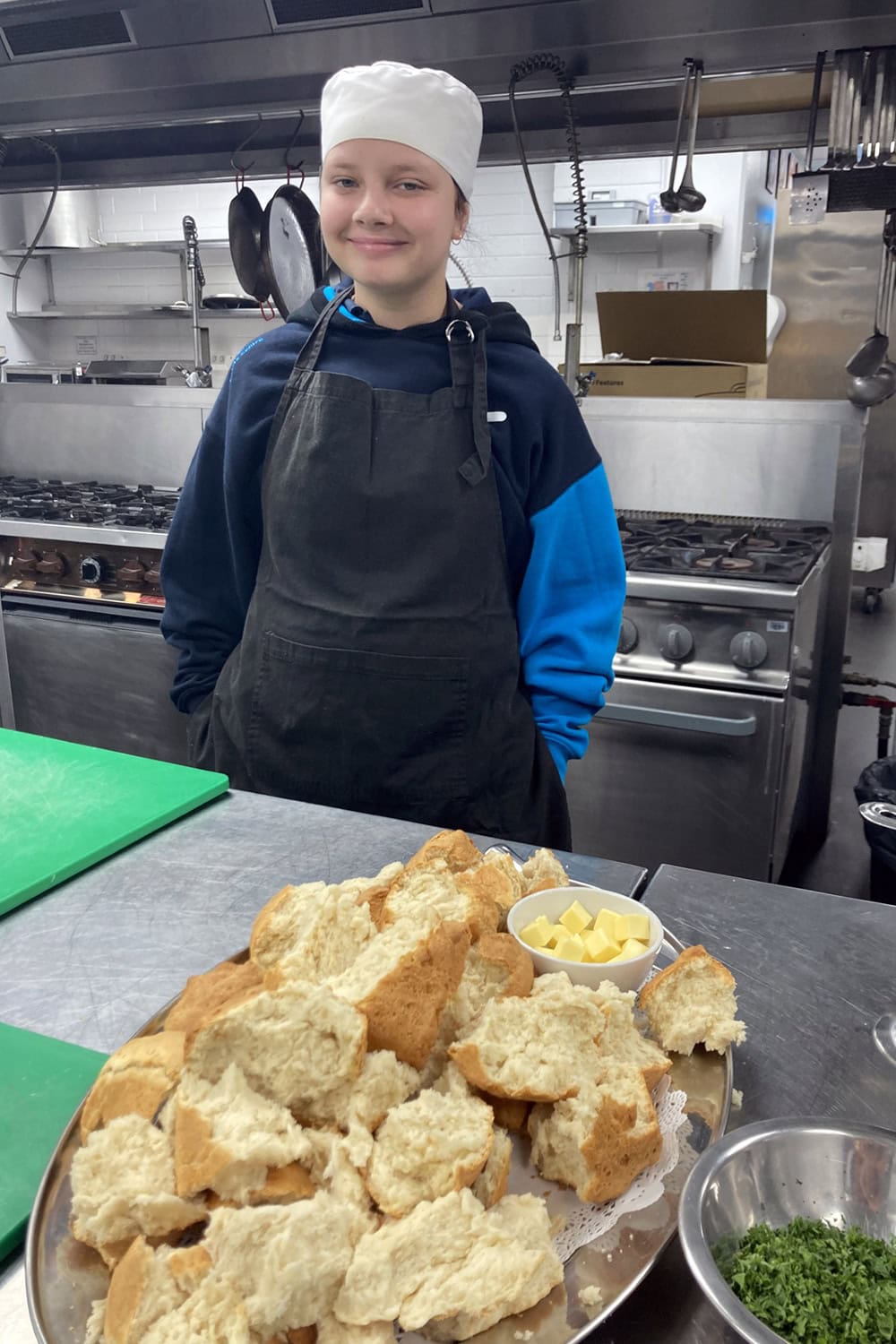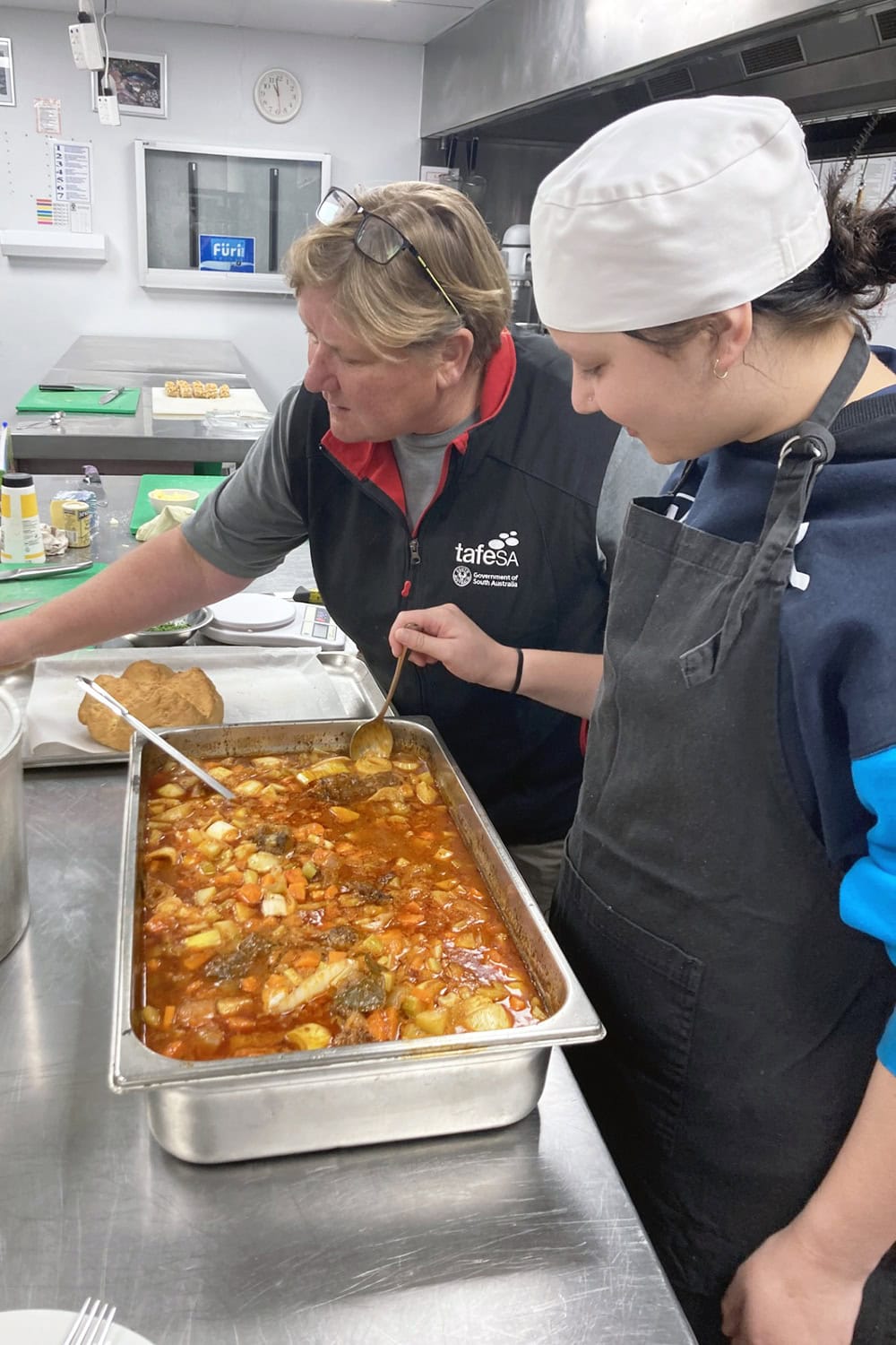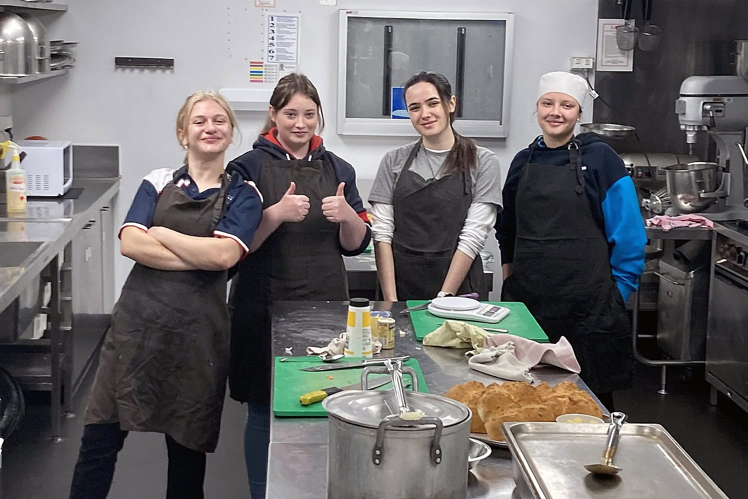 As Head Chef, Year 11 student Shahni Blythman chose the menu for the day; she prepared kangaroo tails (including skinning and removing the sinew) for a delicious stew, as well as making damper. Meanwhile, Bella Meffert (Year 11) and Reegan Pelkonen (Year 12) prepared the vegetables and helped serve the meal to the Minister and his entourage.