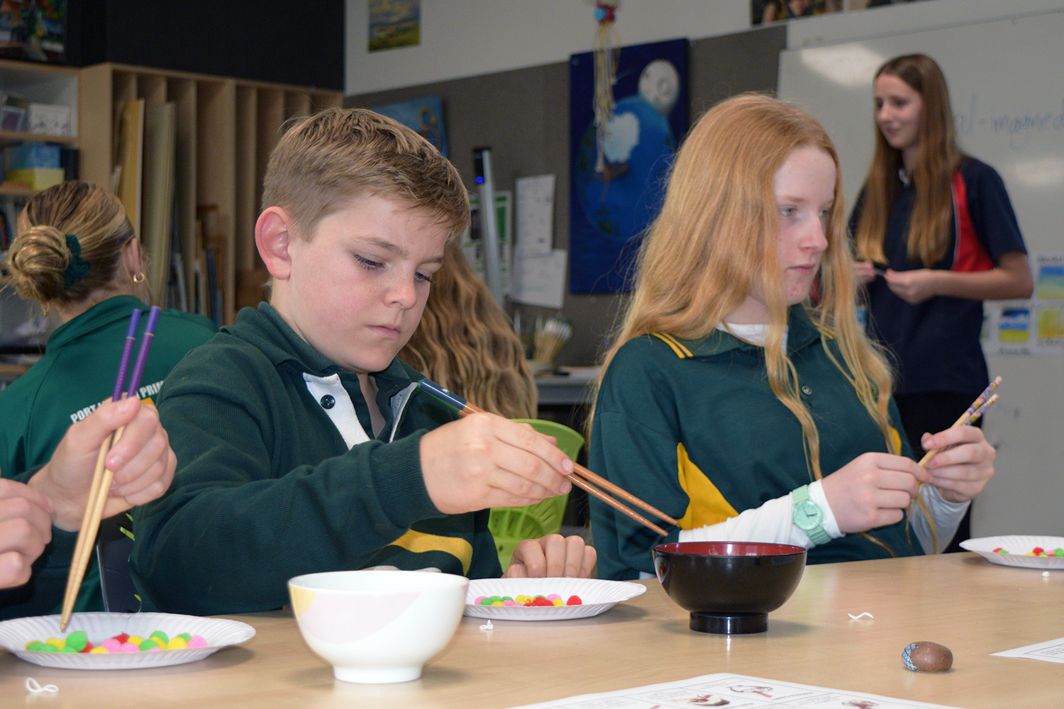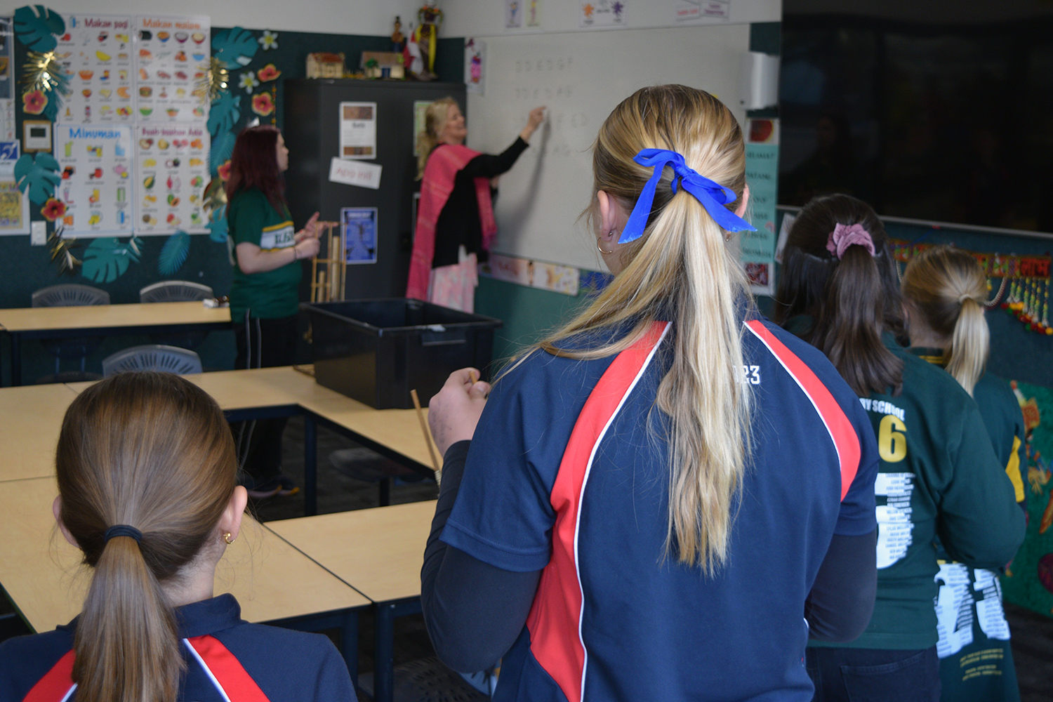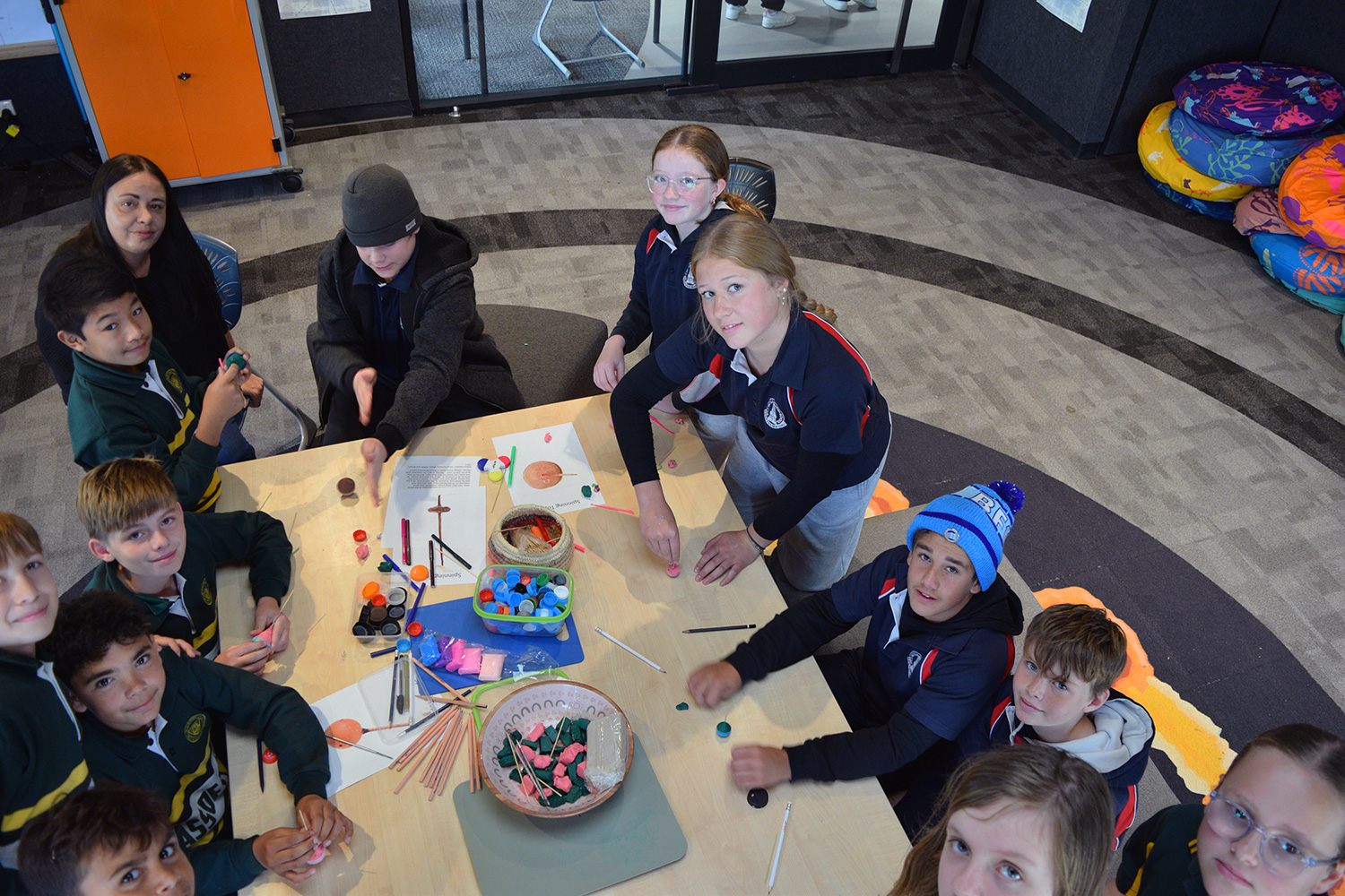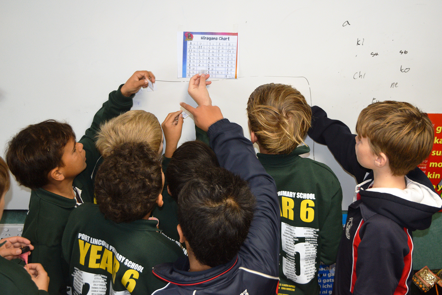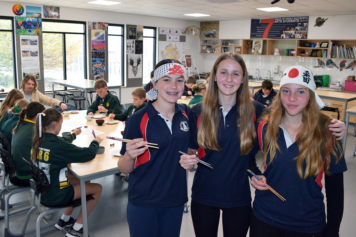 This initiative was designed to showcase the three cultures/languages on offer at PLHS – Aboriginal, Indonesian and Japanese. Together with our current Year 7’s, our Year 6 guests formed eight groups in the Specialist Building; each crew rotated through the following range of culture– and language–based activities: