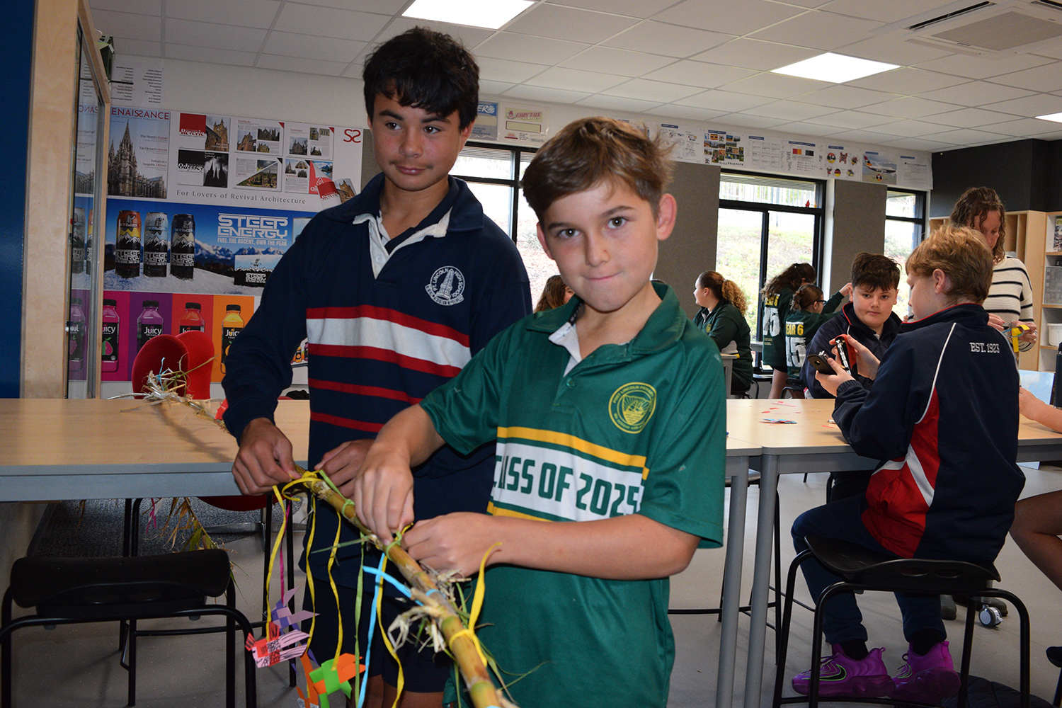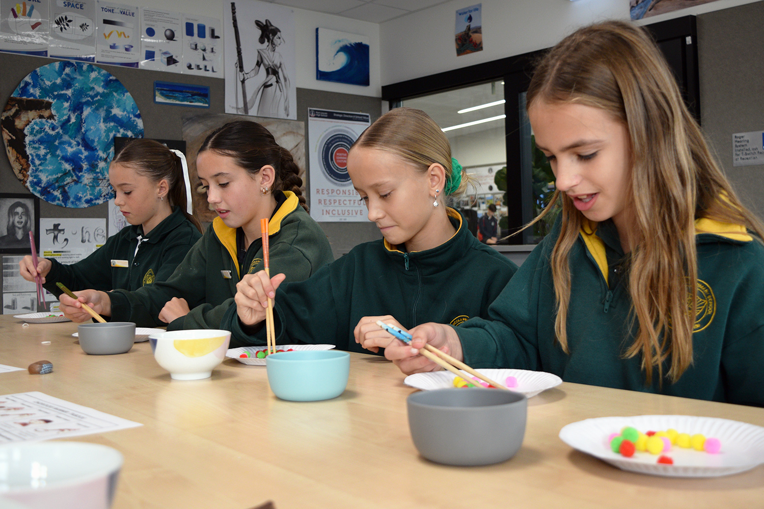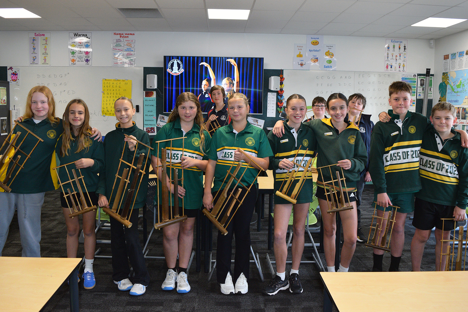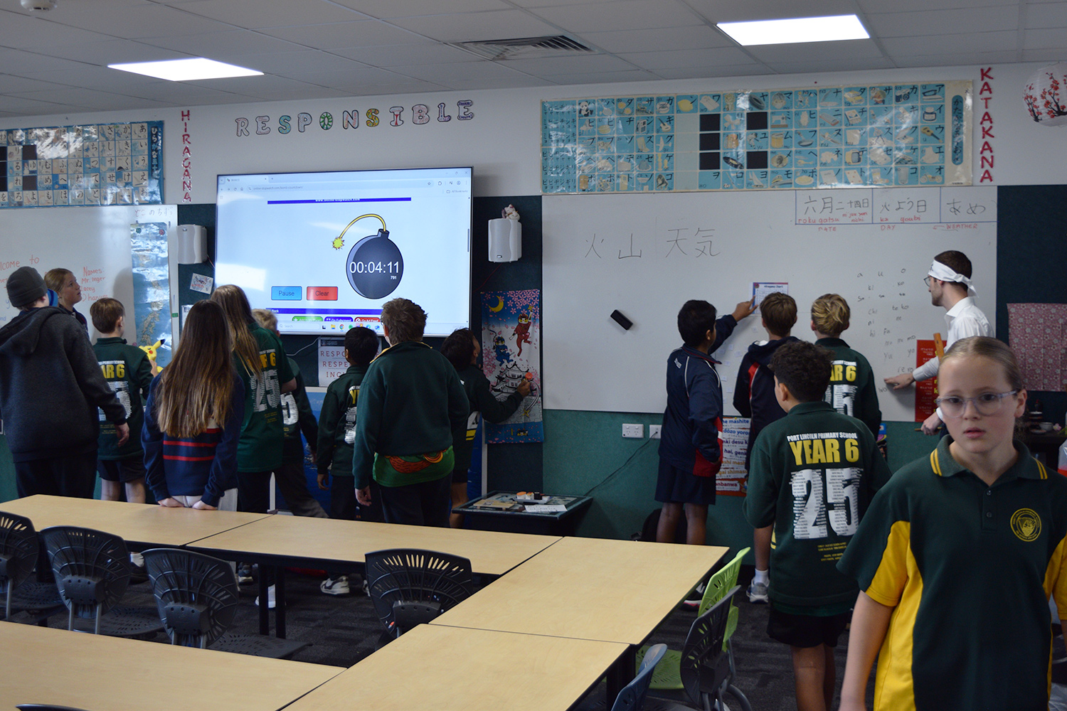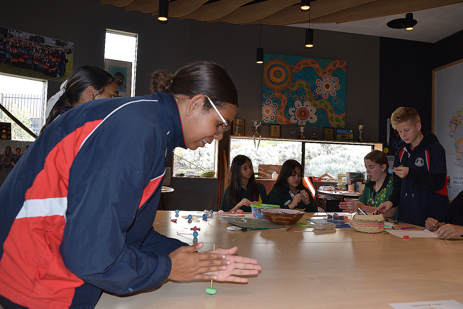 This initiative was designed to showcase the three cultures/languages on offer at PLHS – Aboriginal, Indonesian and Japanese. Together with our current Year 7’s, our Year 6 guests formed eight groups in the Specialist Building; each crew rotated through the following range of culture– and language–based activities: