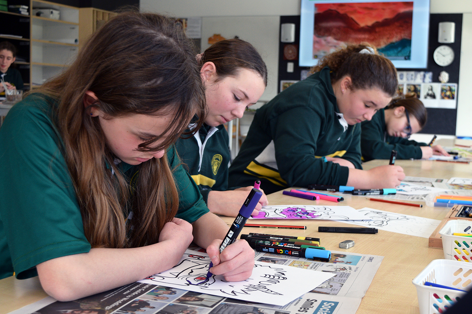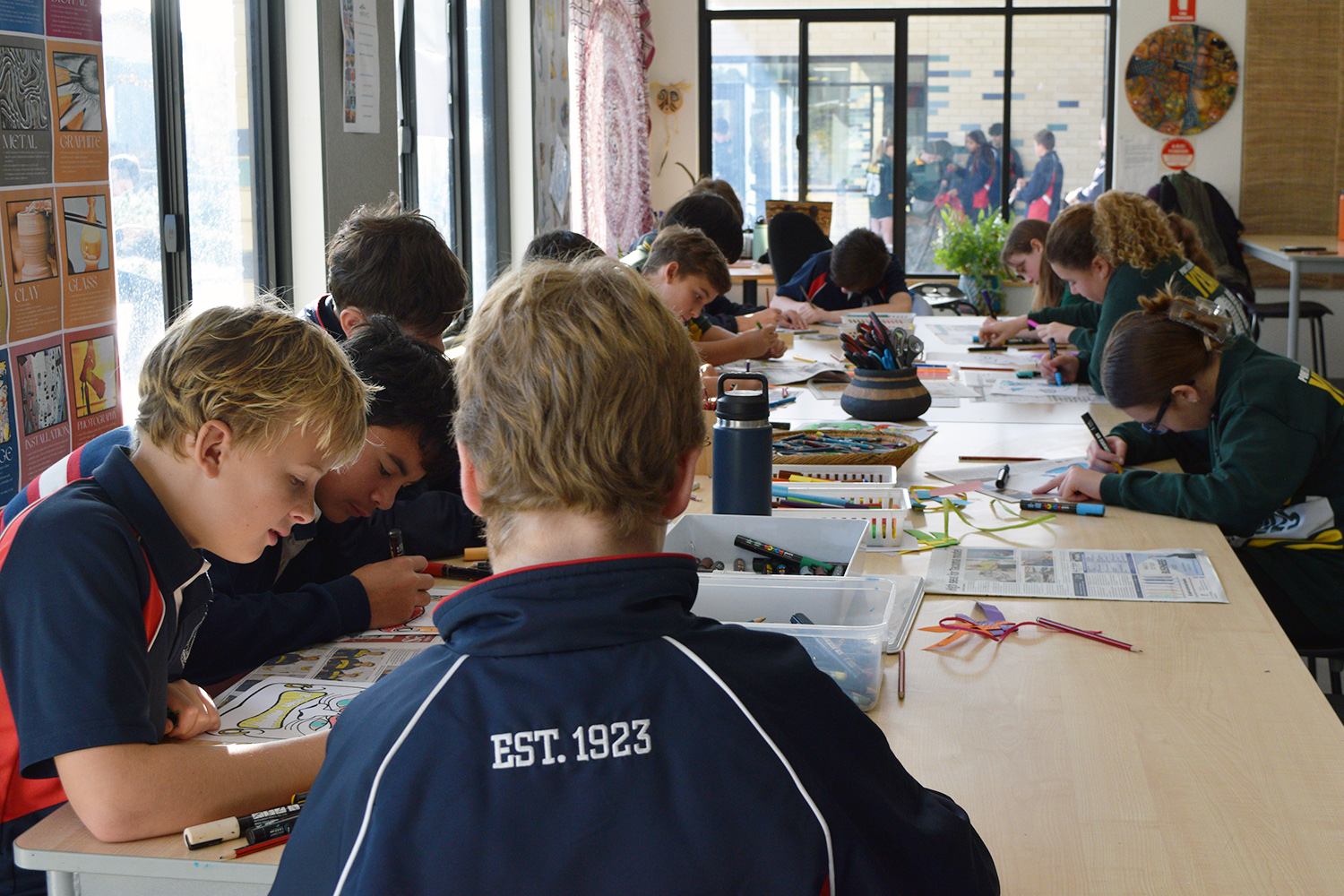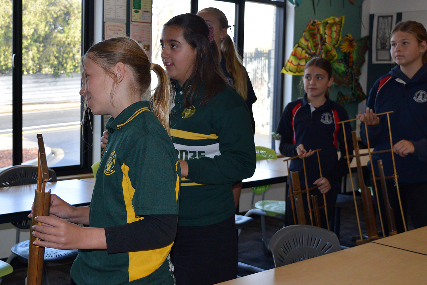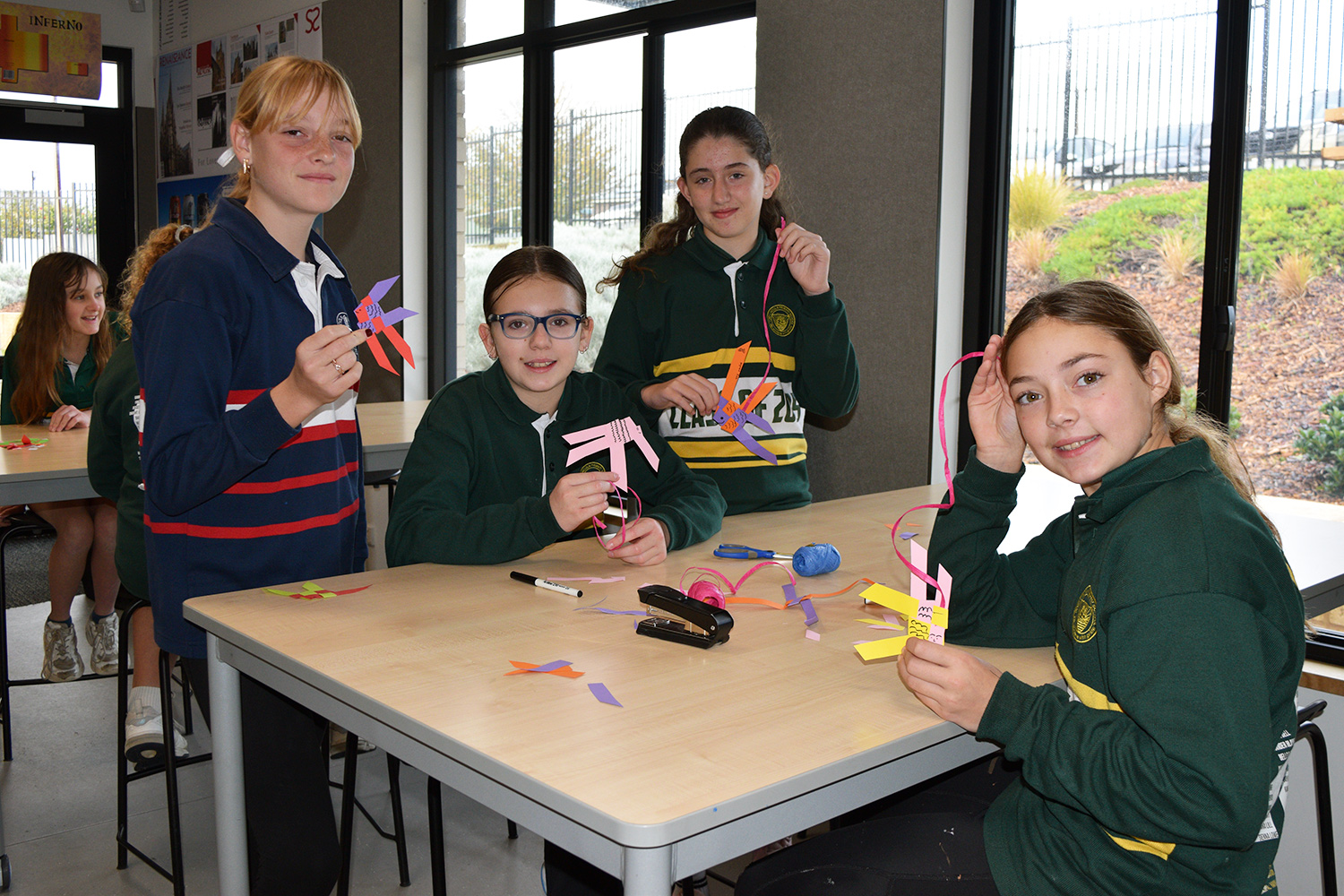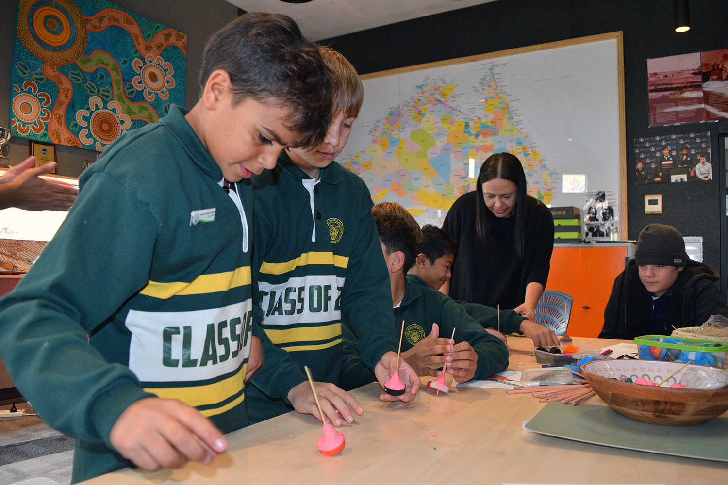 This initiative was designed to showcase the three cultures/languages on offer at PLHS – Aboriginal, Indonesian and Japanese. Together with our current Year 7’s, our Year 6 guests formed eight groups in the Specialist Building; each crew rotated through the following range of culture– and language–based activities: