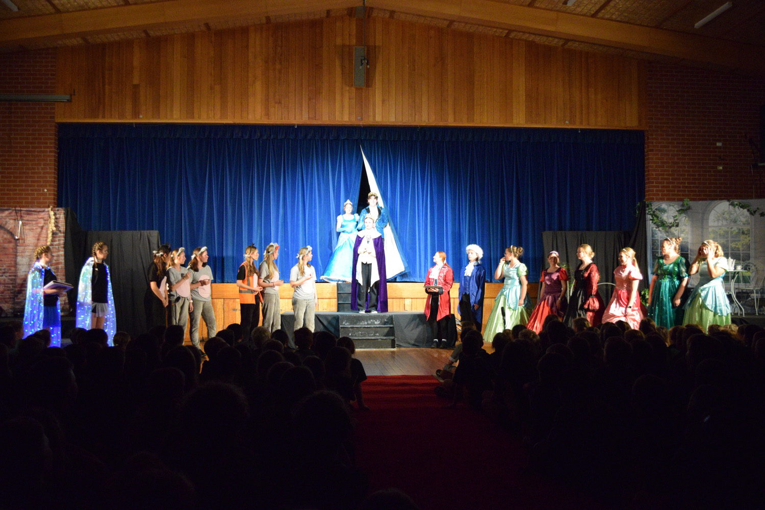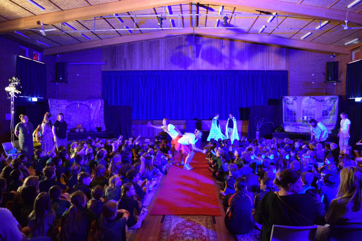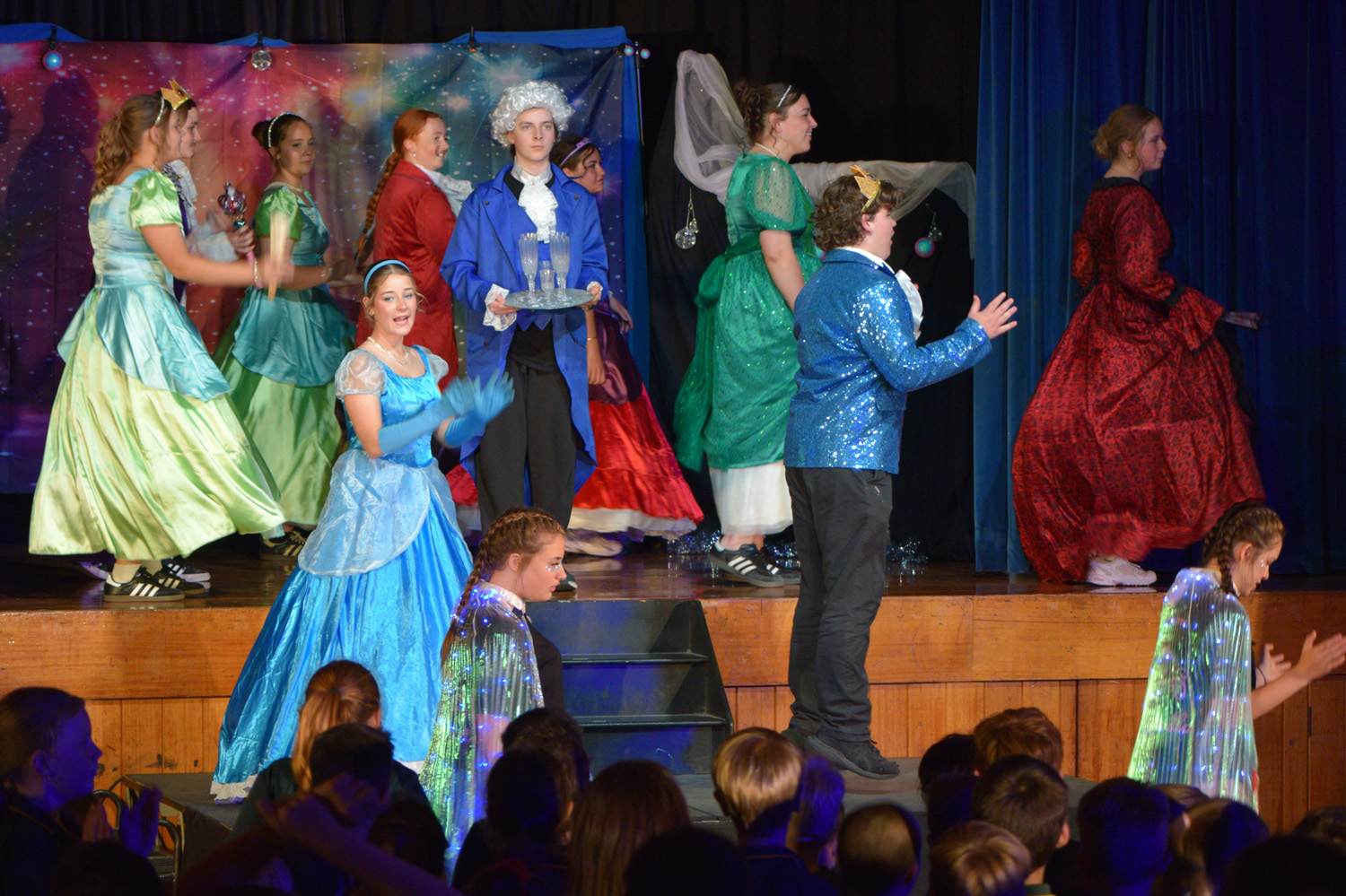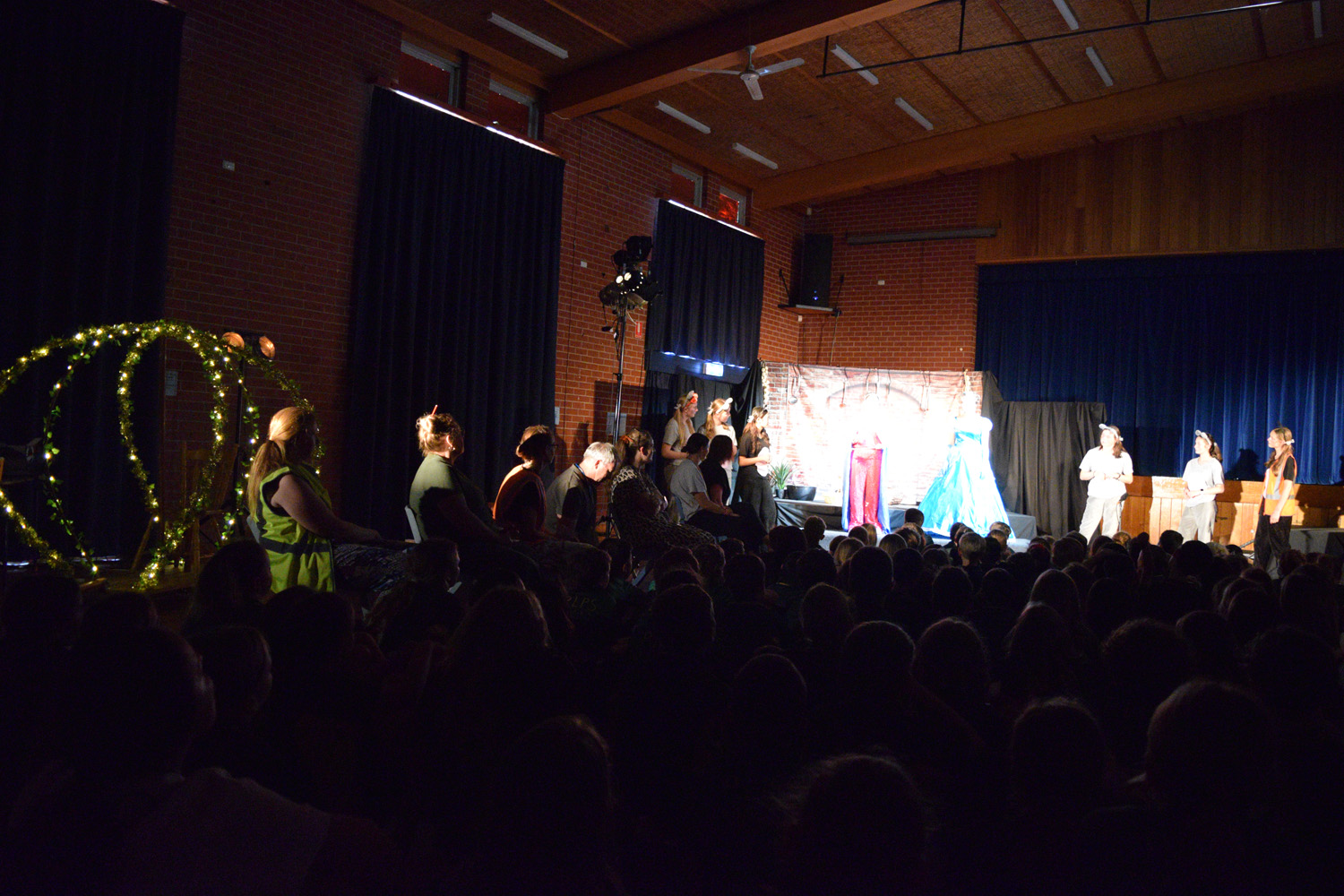 Fortunately, our small class of Year 9 Drama students was able to access the Hall for their nine performances, despite the renovations happening in this space. With the assistance of Stephen Campbell and a merry band of Year 10 students, temporary lighting and sound was created to illuminate the stages and produce the theatrical magic expected from a PLHS Panto.