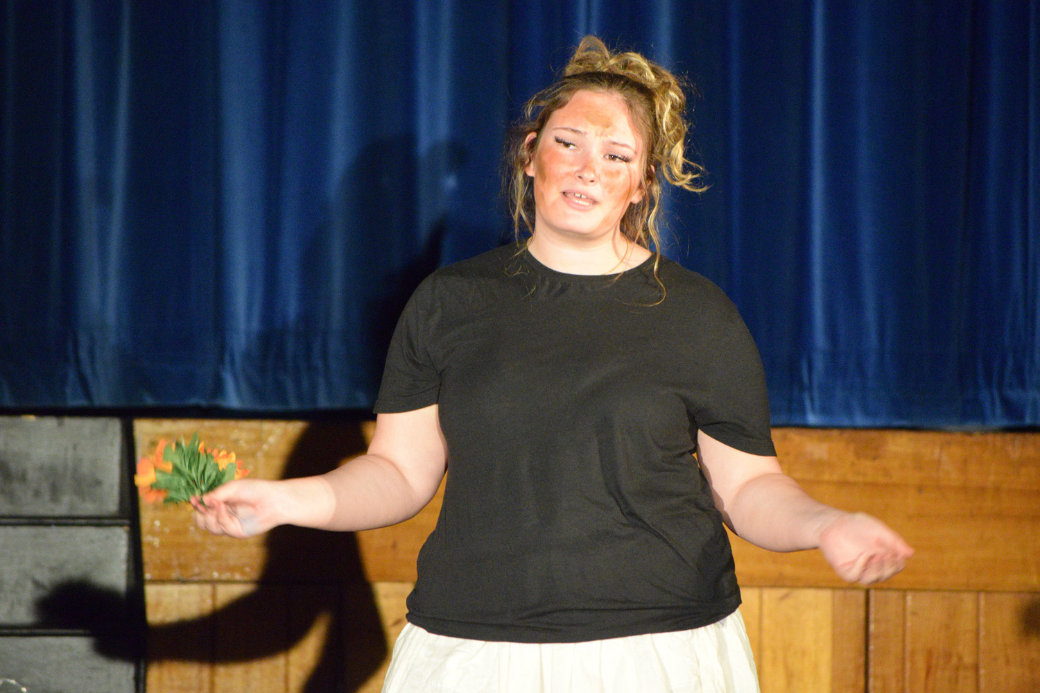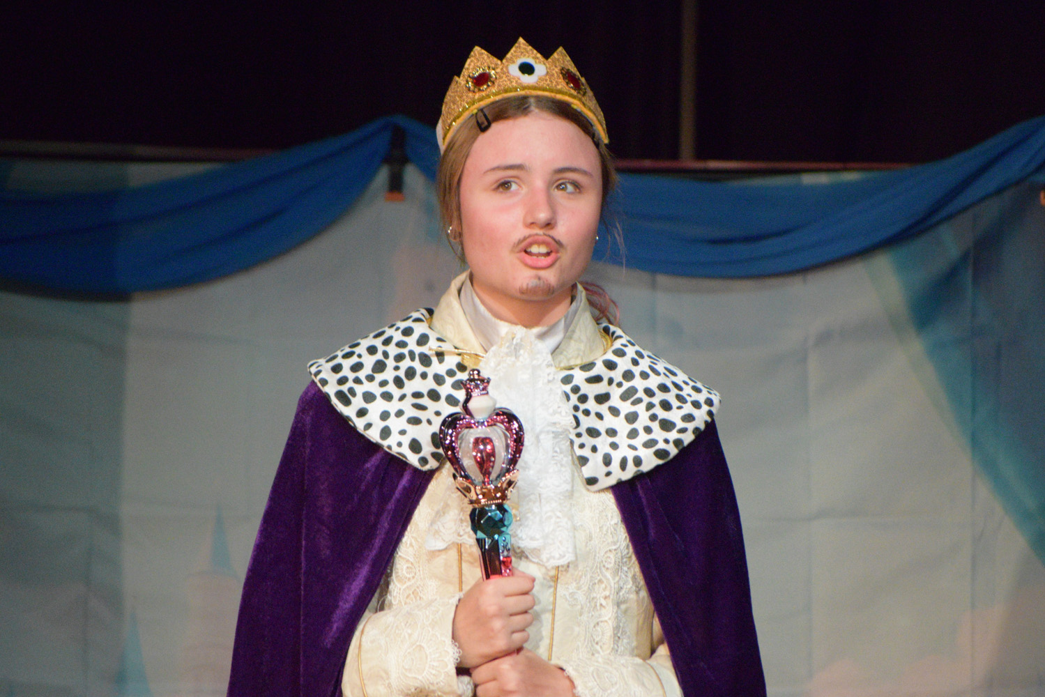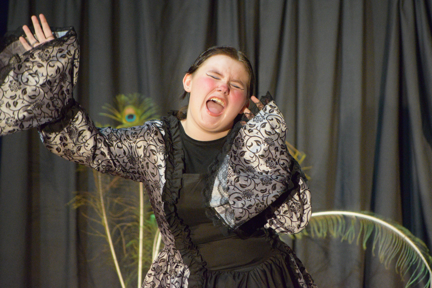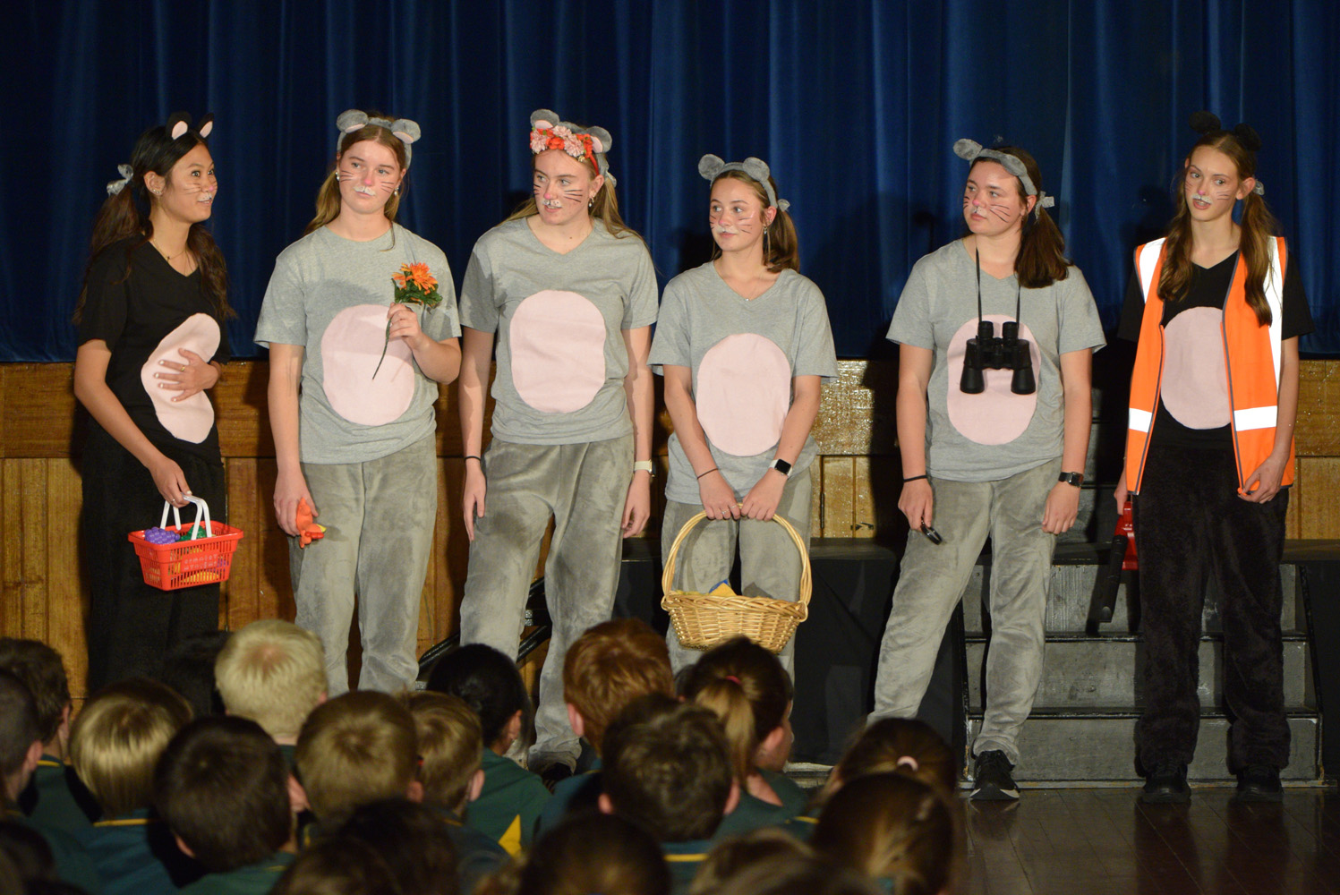 Fortunately, our small class of Year 9 Drama students was able to access the Hall for their nine performances, despite the renovations happening in this space. With the assistance of Stephen Campbell and a merry band of Year 10 students, temporary lighting and sound was created to illuminate the stages and produce the theatrical magic expected from a PLHS Panto.